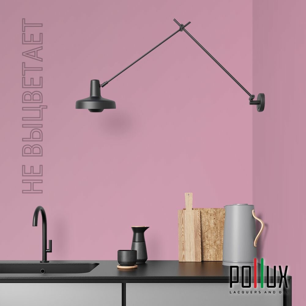Краска моющаяся интерьерная для стен и потолков, Pollux INTERIOR без запаха, быстросохнущая, акриловая, матовое покрытие, цвет NCS S 0907-R30B, 1л.