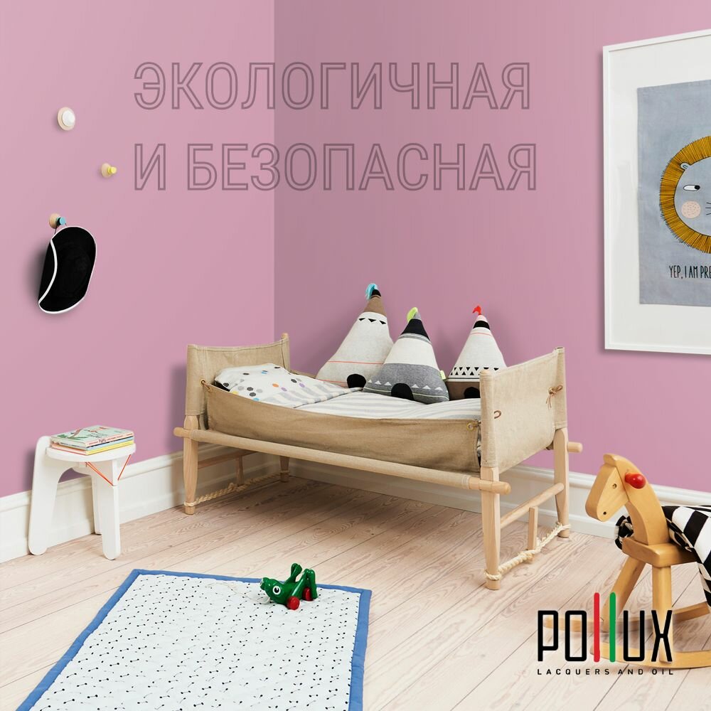 Краска моющаяся интерьерная для стен и потолков, Pollux INTERIOR без запаха, быстросохнущая, акриловая, матовое покрытие, цвет NCS S 0530-R30B, 1л.
