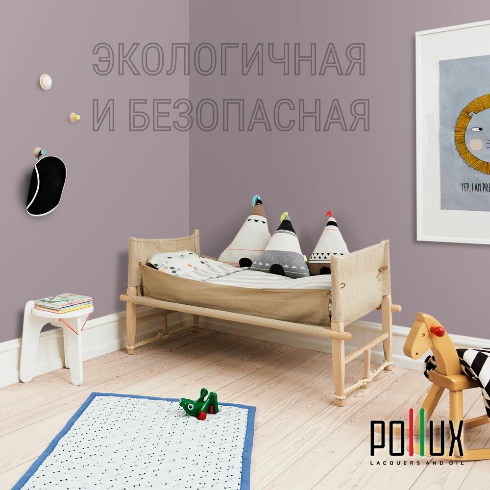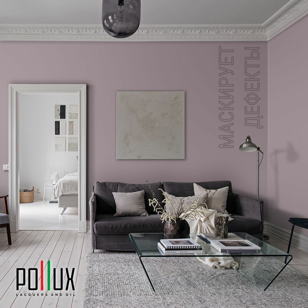 Краска моющаяся интерьерная для стен и потолков, Pollux INTERIOR без запаха, быстросохнущая, акриловая, матовое покрытие, цвет NCS S 0907-R30B, 1л.