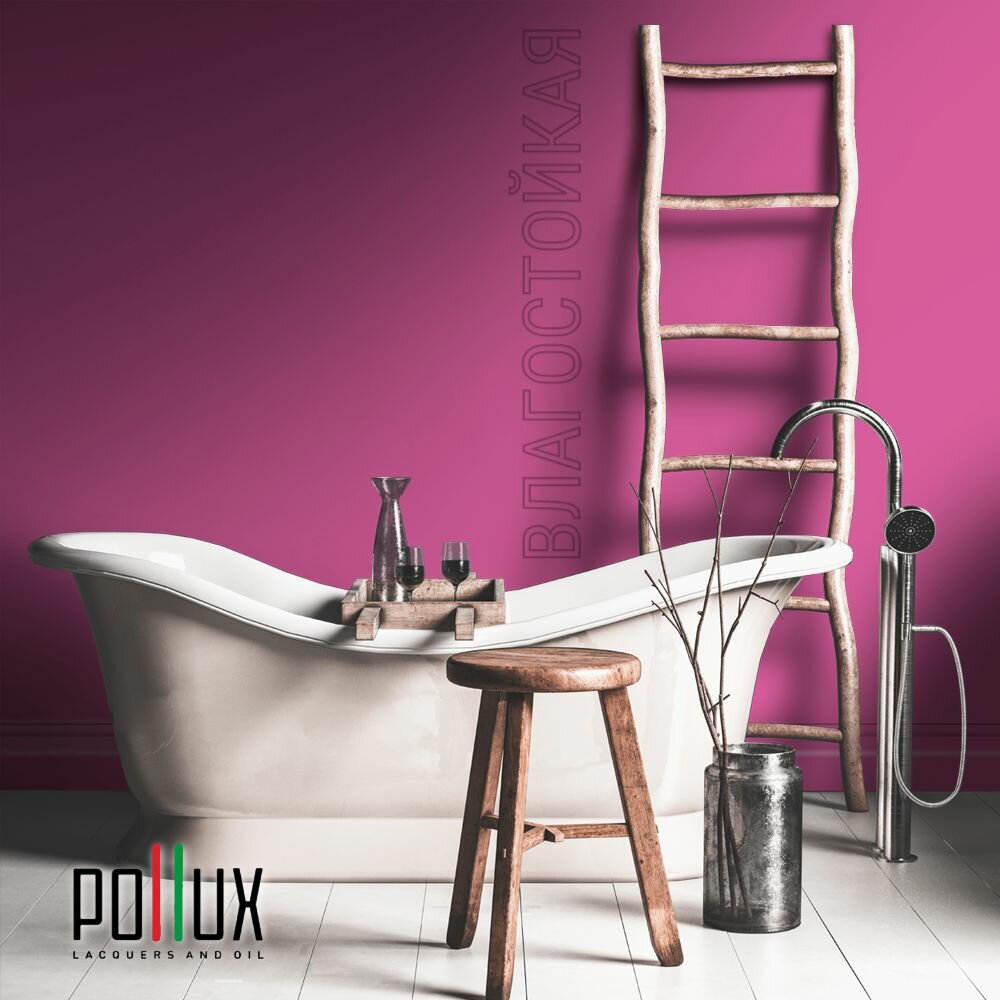 Краска моющаяся интерьерная для стен и потолков, Pollux INTERIOR без запаха, быстросохнущая, акриловая, матовое покрытие, цвет NCS S 2030-R30B, 1л.