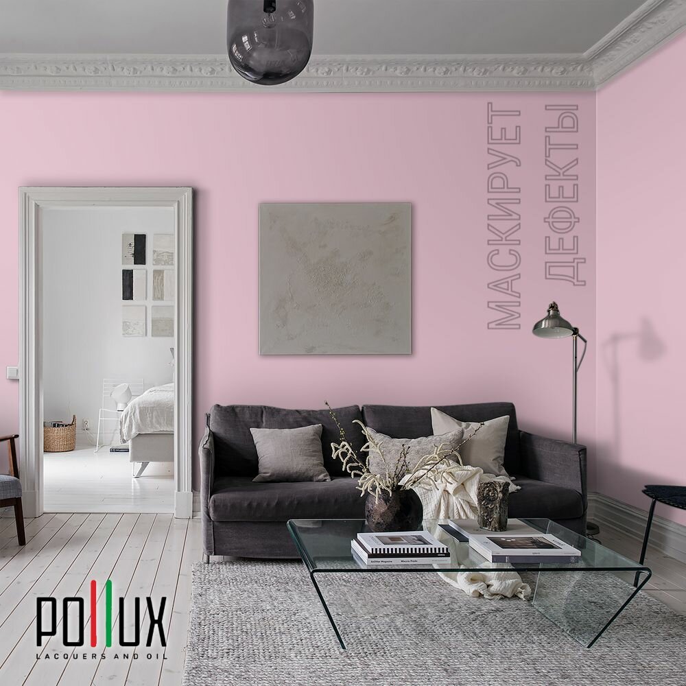 Краска моющаяся интерьерная для стен и потолков, Pollux INTERIOR без запаха, быстросохнущая, акриловая, матовое покрытие, цвет NCS S 0907-R30B, 1л.