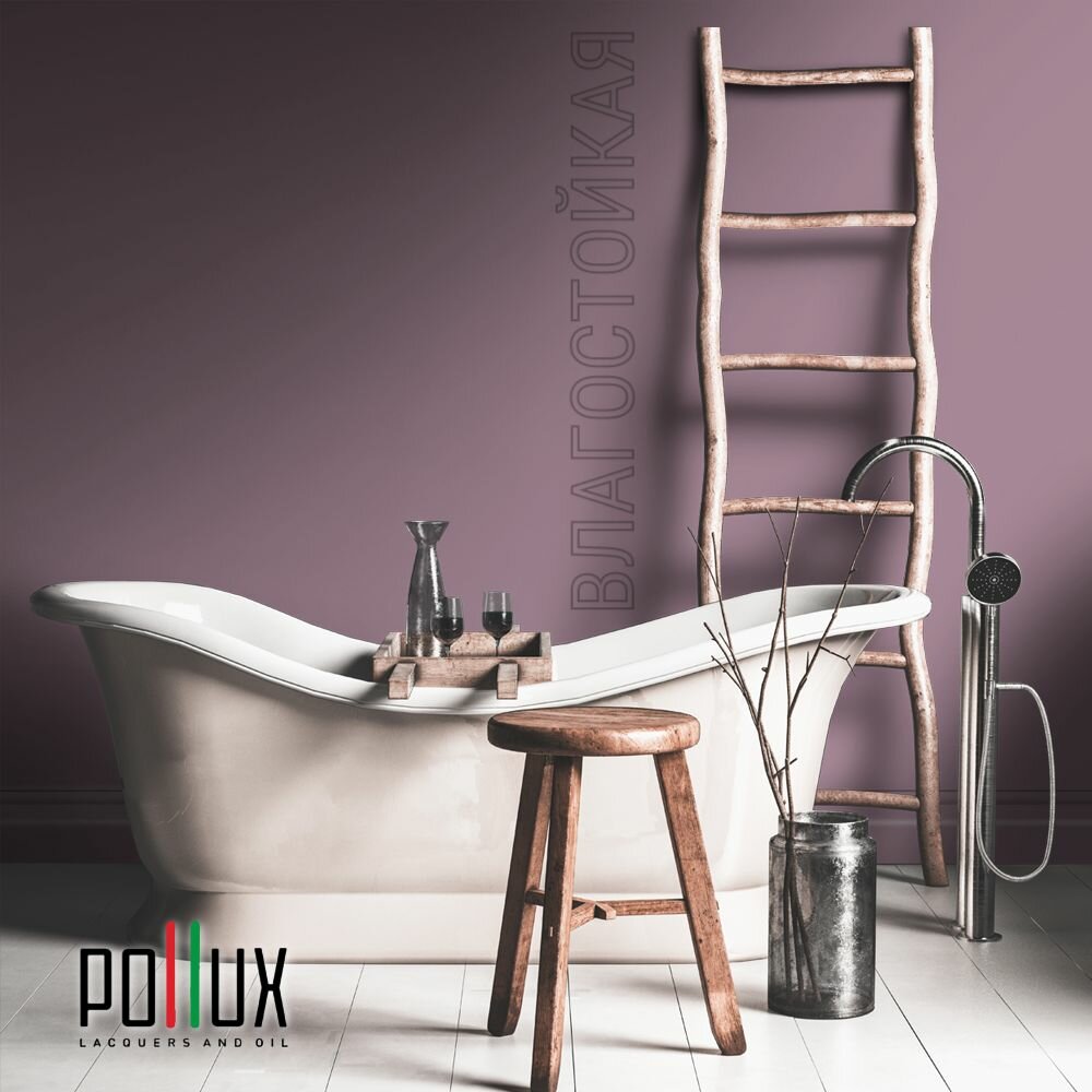 Краска моющаяся интерьерная для стен и потолков, Pollux INTERIOR без запаха, быстросохнущая, акриловая, матовое покрытие, цвет NCS S 0505-R30B, 1л.