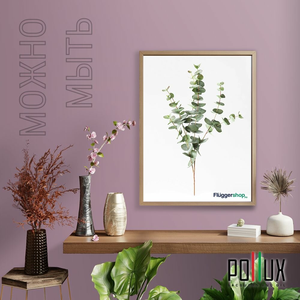 Краска моющаяся интерьерная для стен и потолков, Pollux INTERIOR без запаха, быстросохнущая, акриловая, матовое покрытие, цвет NCS S 0907-R30B, 5л.