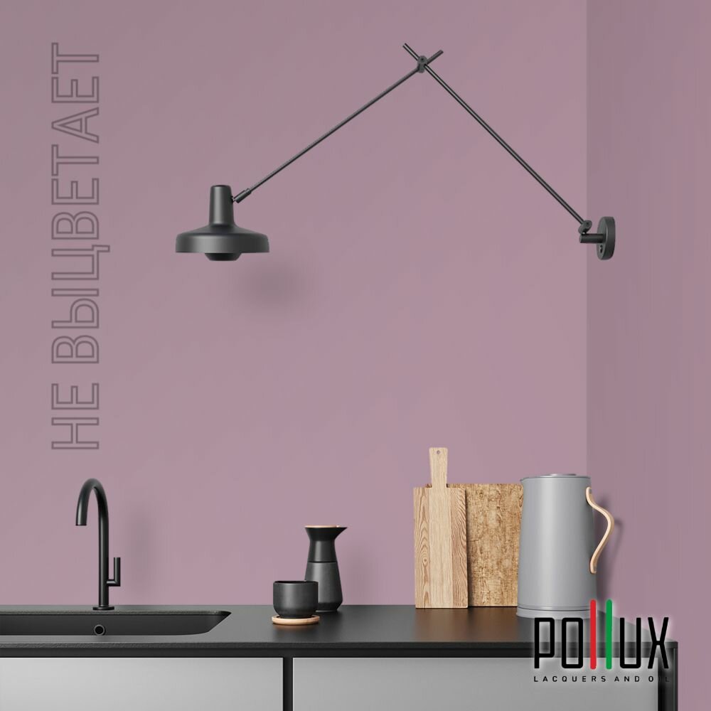 Краска моющаяся интерьерная для стен и потолков, Pollux INTERIOR без запаха, быстросохнущая, акриловая, матовое покрытие, цвет NCS S 0530-R30B, 1л.