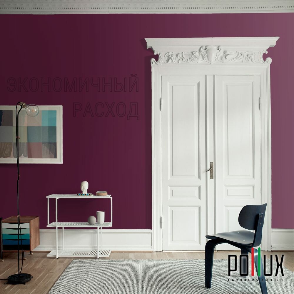 Краска моющаяся интерьерная для стен и потолков, Pollux INTERIOR без запаха, быстросохнущая, акриловая, матовое покрытие, цвет NCS S 2030-R30B, 1л.