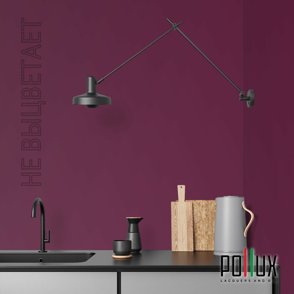 Краска моющаяся интерьерная для стен и потолков, Pollux INTERIOR без запаха, быстросохнущая, акриловая, матовое покрытие, цвет NCS S 7020-R30B, 1л.
