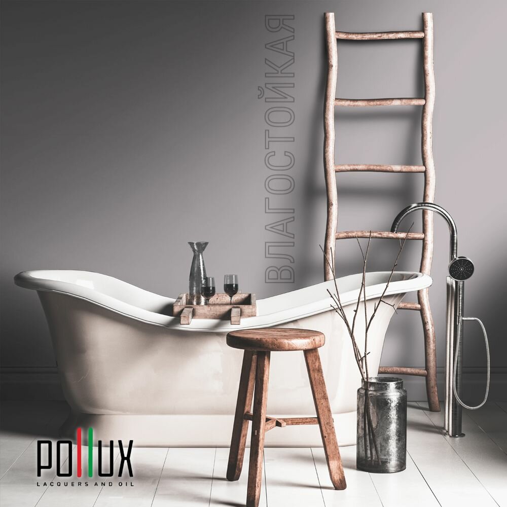 Краска моющаяся интерьерная для стен и потолков, Pollux INTERIOR без запаха, быстросохнущая, акриловая, матовое покрытие, цвет NCS S 7010-R30B, 1л.