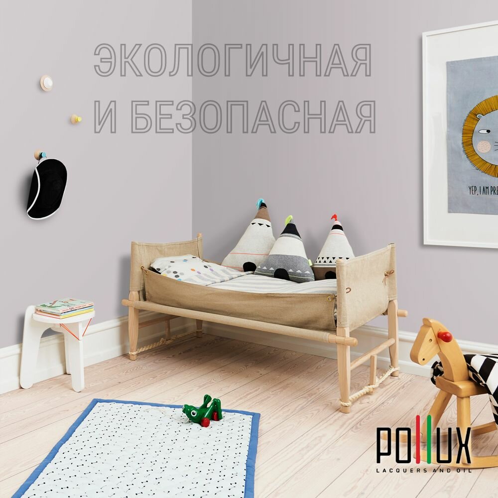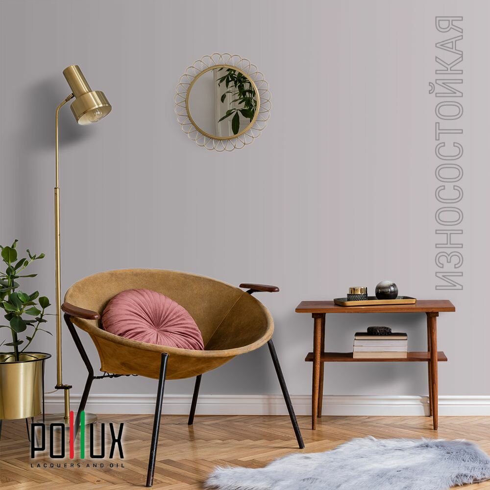 Краска моющаяся интерьерная для стен и потолков, Pollux INTERIOR без запаха, быстросохнущая, акриловая, матовое покрытие, цвет NCS S 0907-R30B, 1л.