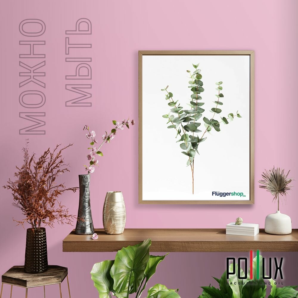 Краска моющаяся интерьерная для стен и потолков, Pollux INTERIOR без запаха, быстросохнущая, акриловая, матовое покрытие, цвет NCS S 0907-R30B, 5л.