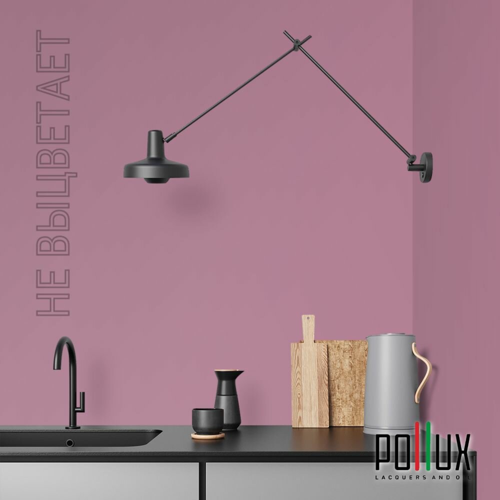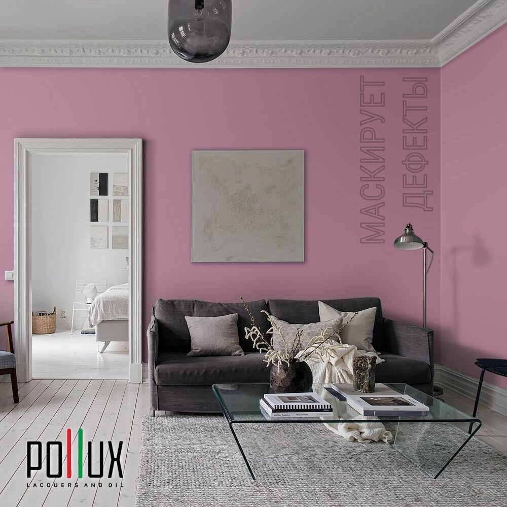 Краска моющаяся интерьерная для стен и потолков, Pollux INTERIOR без запаха, быстросохнущая, акриловая, матовое покрытие, цвет NCS S 0907-R30B, 1л.