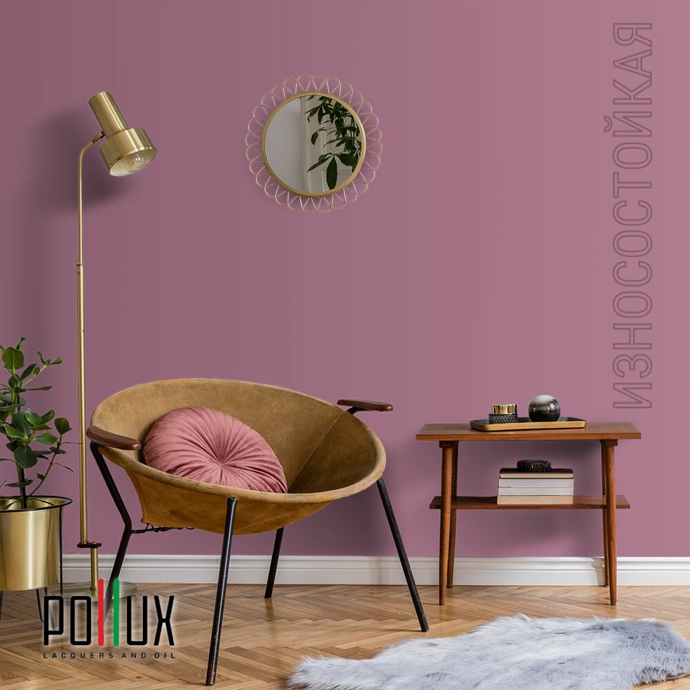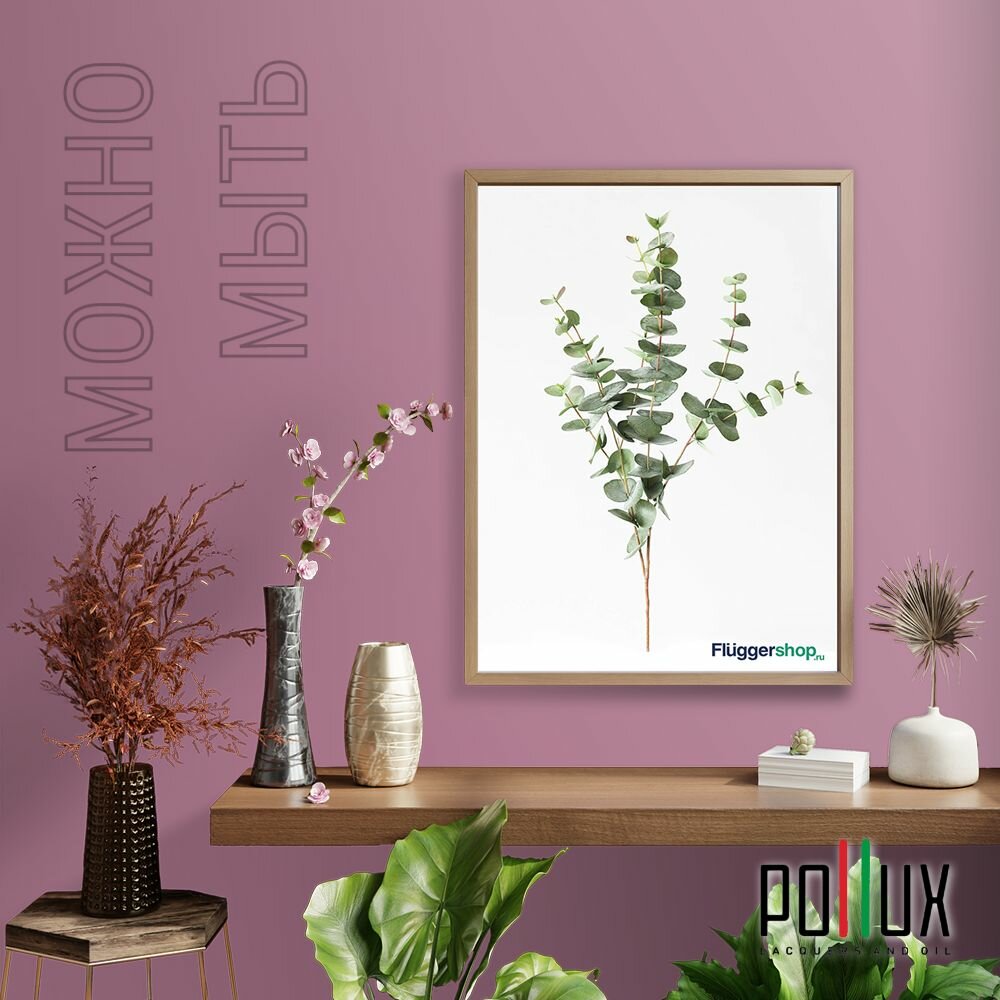 Краска моющаяся интерьерная для стен и потолков, Pollux INTERIOR без запаха, быстросохнущая, акриловая, матовое покрытие, цвет NCS S 0505-R30B, 1л.