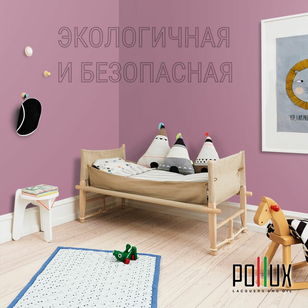 Краска моющаяся интерьерная для стен и потолков, Pollux INTERIOR без запаха, быстросохнущая, акриловая, матовое покрытие, цвет NCS S 0520-R30B, 1л.