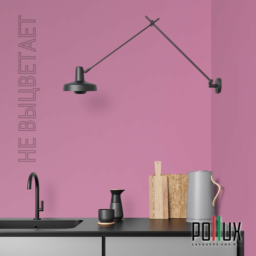 Краска моющаяся интерьерная для стен и потолков, Pollux INTERIOR без запаха, быстросохнущая, акриловая, матовое покрытие, цвет NCS S 0907-R30B, 1л.