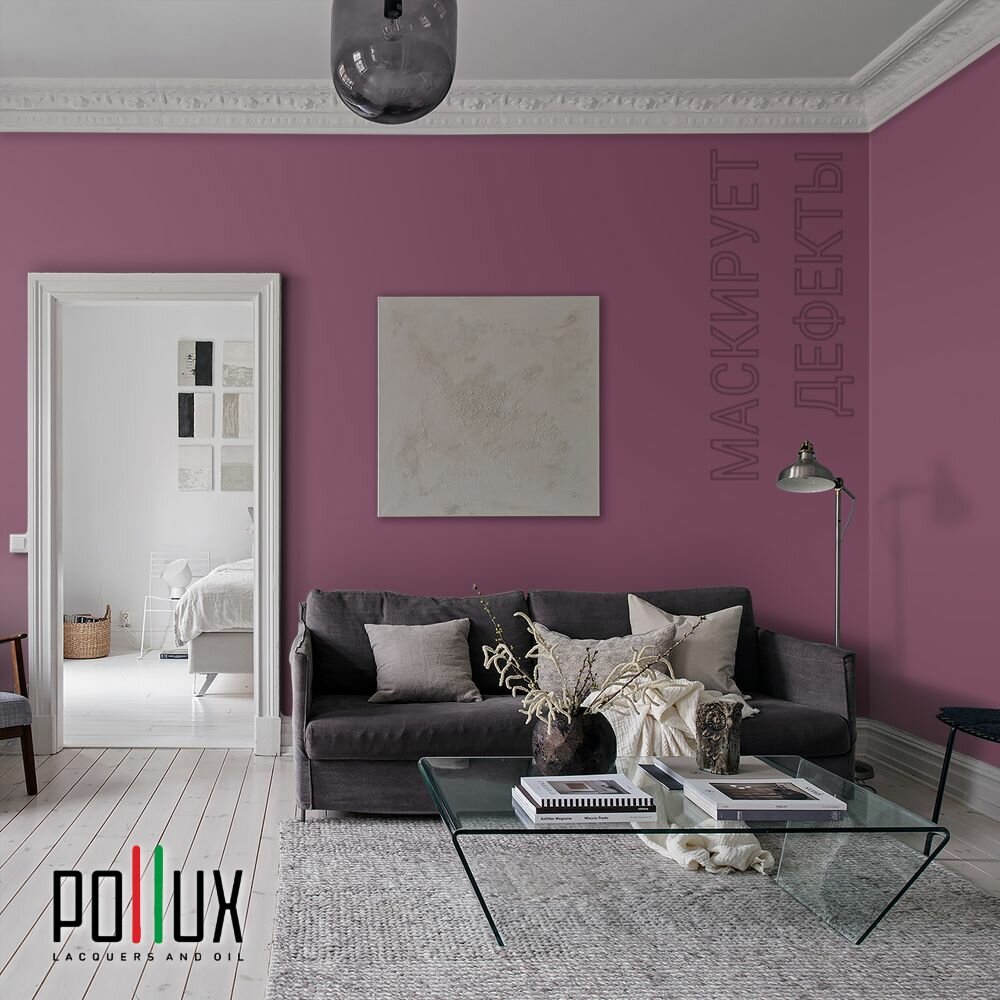 Краска моющаяся интерьерная для стен и потолков, Pollux INTERIOR без запаха, быстросохнущая, акриловая, матовое покрытие, цвет NCS S 0907-R30B, 1л.