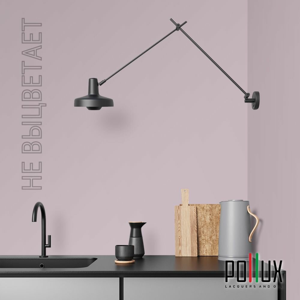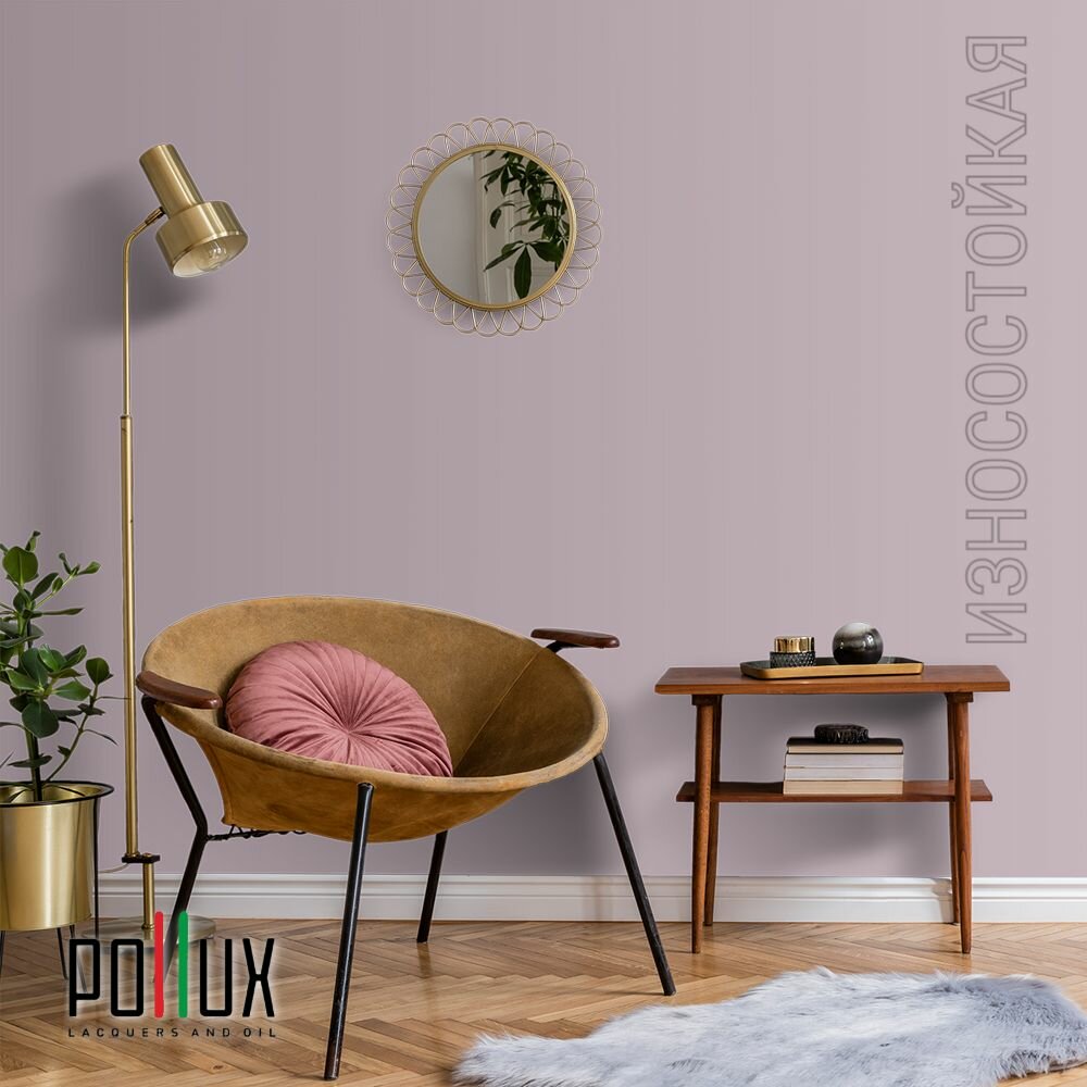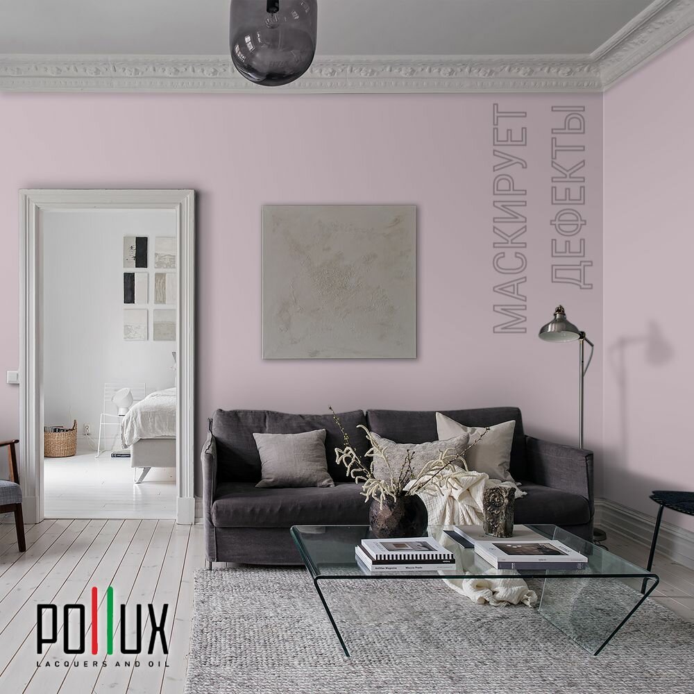 Краска моющаяся интерьерная для стен и потолков, Pollux INTERIOR без запаха, быстросохнущая, акриловая, матовое покрытие, цвет NCS S 0907-R30B, 1л.