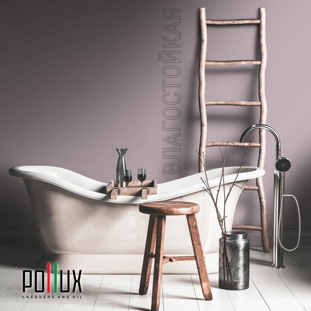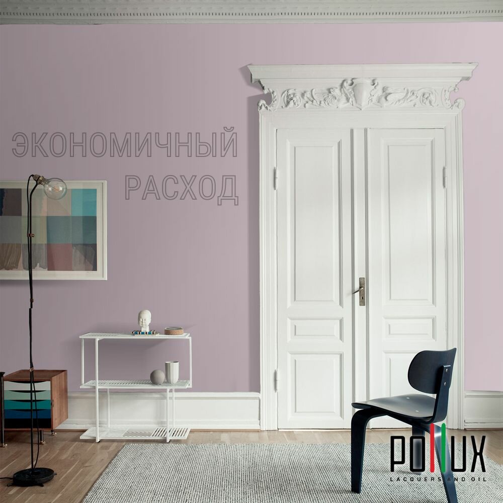 Краска моющаяся интерьерная для стен и потолков, Pollux INTERIOR без запаха, быстросохнущая, акриловая, матовое покрытие, цвет NCS S 0505-R30B, 1л.