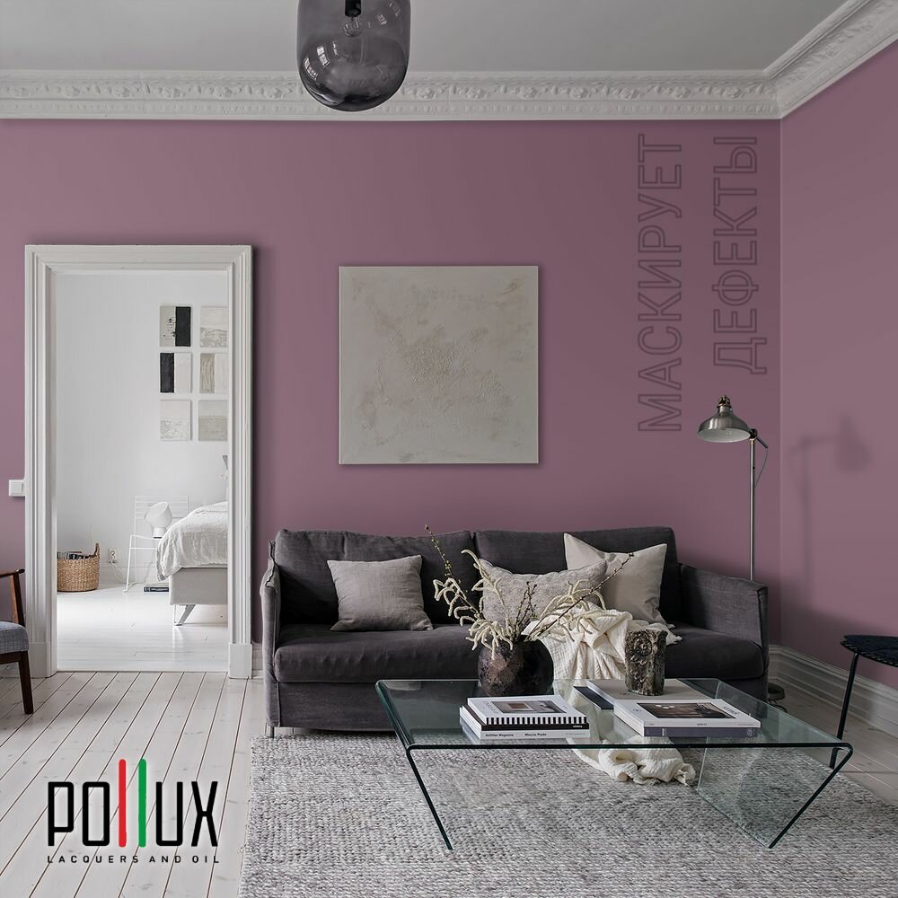 Краска моющаяся интерьерная для стен и потолков, Pollux INTERIOR без запаха, быстросохнущая, акриловая, матовое покрытие, цвет NCS S 0505-R30B, 1л.