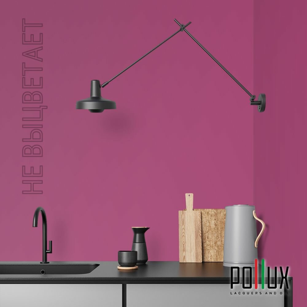 Краска моющаяся интерьерная для стен и потолков, Pollux INTERIOR без запаха, быстросохнущая, акриловая, матовое покрытие, цвет NCS S 0907-R30B, 1л.