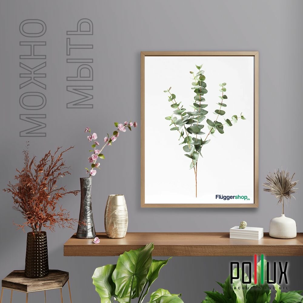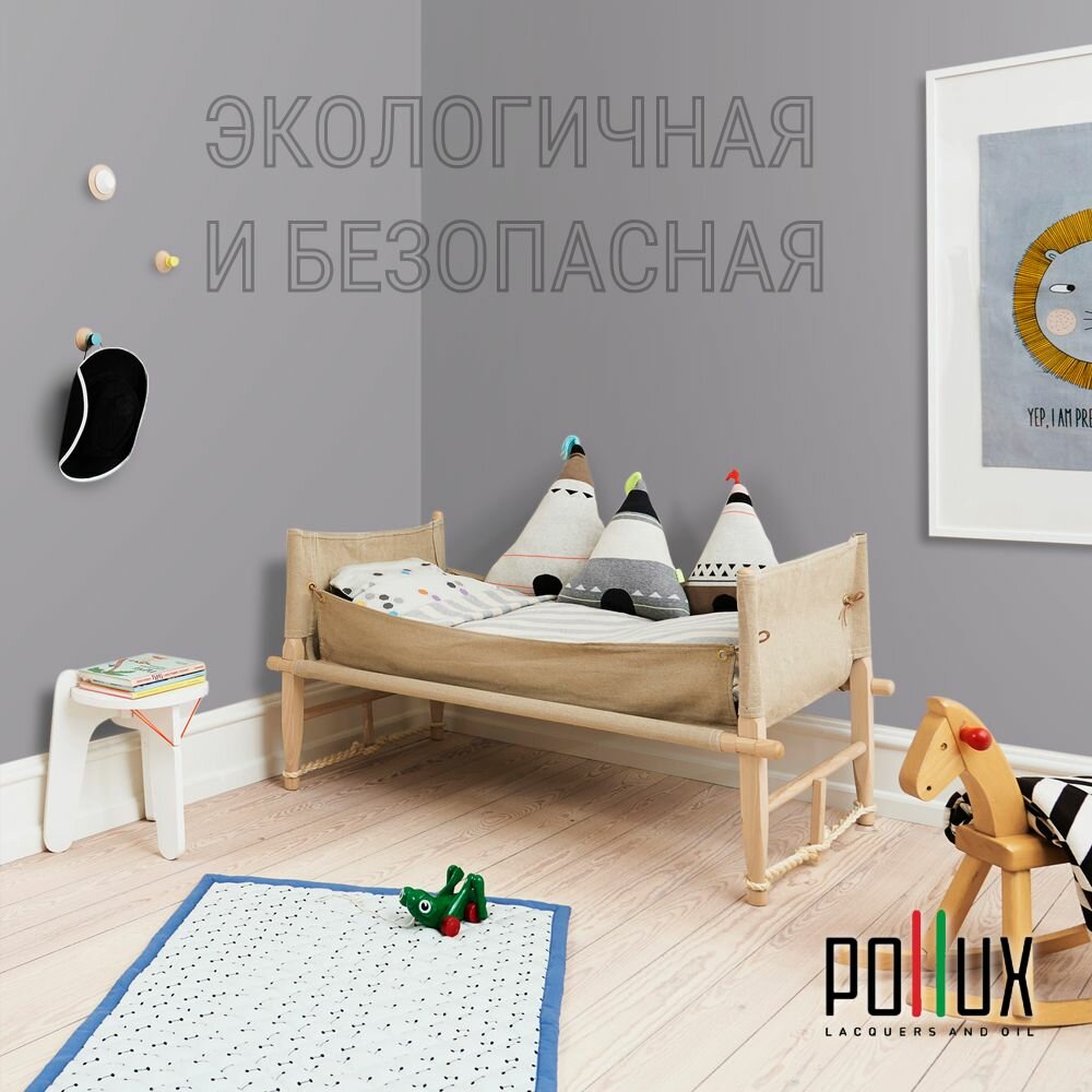 Краска моющаяся интерьерная для стен и потолков, Pollux INTERIOR без запаха, быстросохнущая, акриловая, матовое покрытие, цвет NCS S 7005-R50B, 1л.