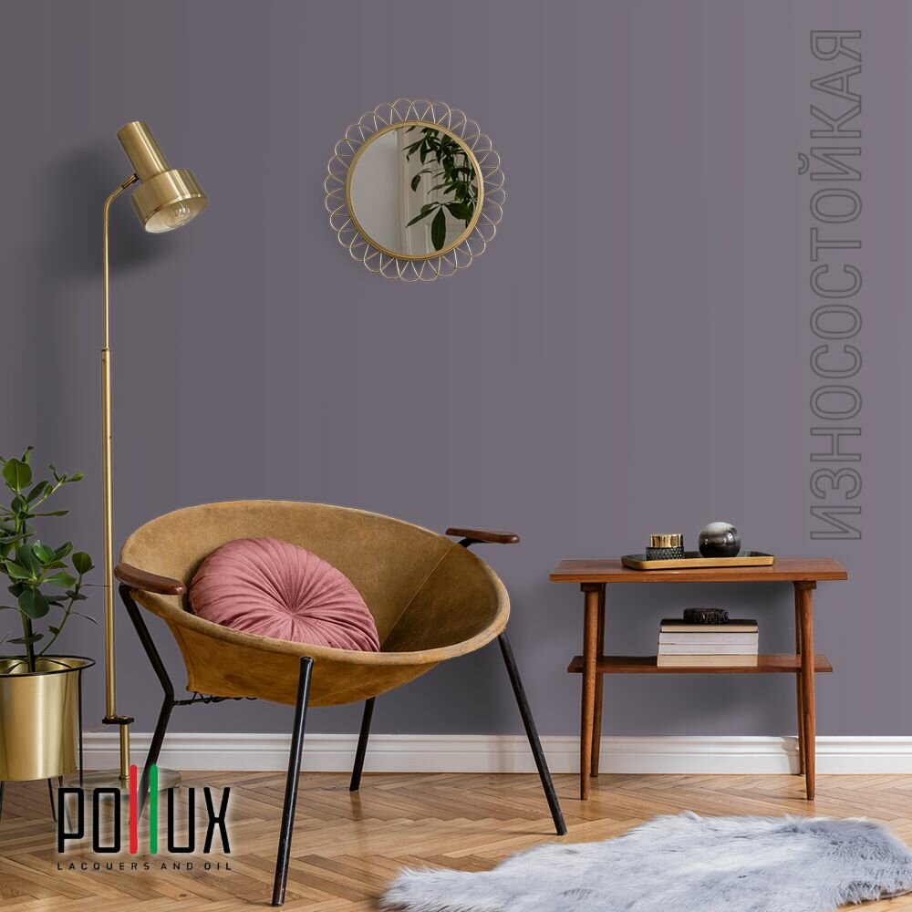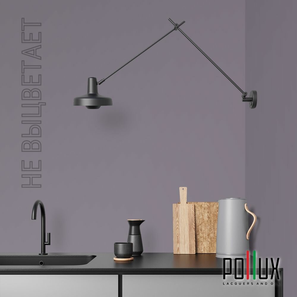 Краска моющаяся интерьерная для стен и потолков, Pollux INTERIOR без запаха, быстросохнущая, акриловая, матовое покрытие, цвет NCS S 7020-R50B, 1л.