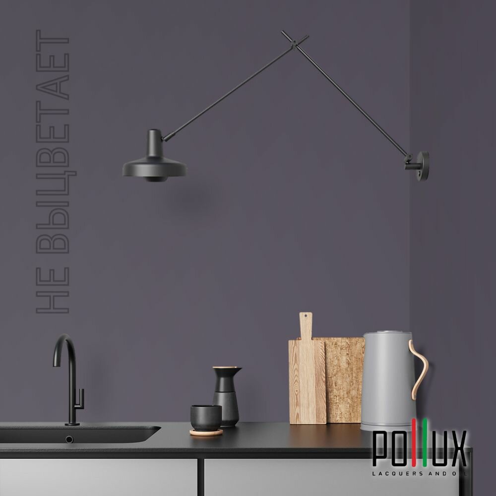 Краска моющаяся интерьерная для стен и потолков, Pollux INTERIOR без запаха, быстросохнущая, акриловая, матовое покрытие, цвет NCS S 7020-R50B, 1л.