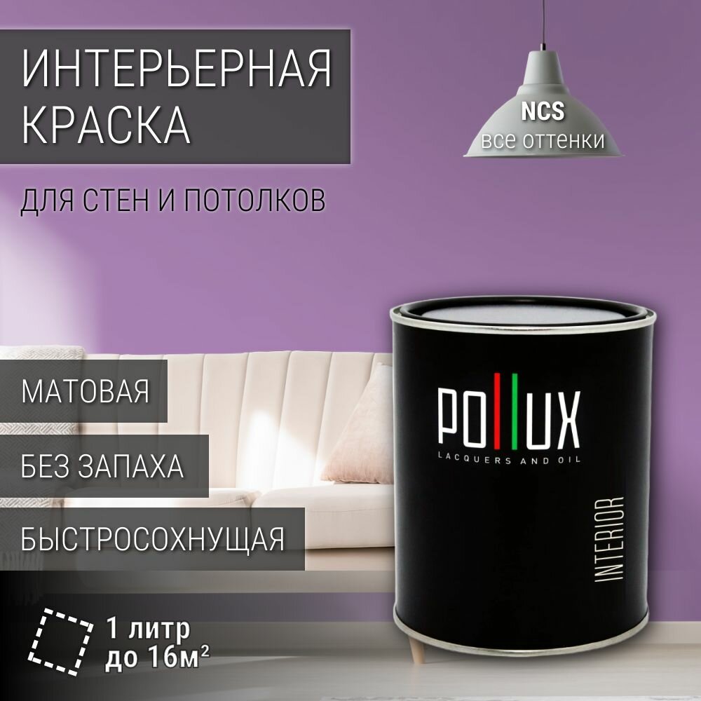 Краска моющаяся интерьерная для стен и потолков, Pollux INTERIOR без запаха, быстросохнущая, акриловая, матовое покрытие, цвет NCS S 3005-R50B, 1л.