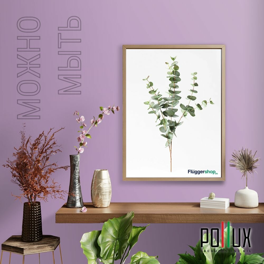 Краска моющаяся интерьерная для стен и потолков, Pollux INTERIOR без запаха, быстросохнущая, акриловая, матовое покрытие, цвет NCS S 5005-R50B, 5л.