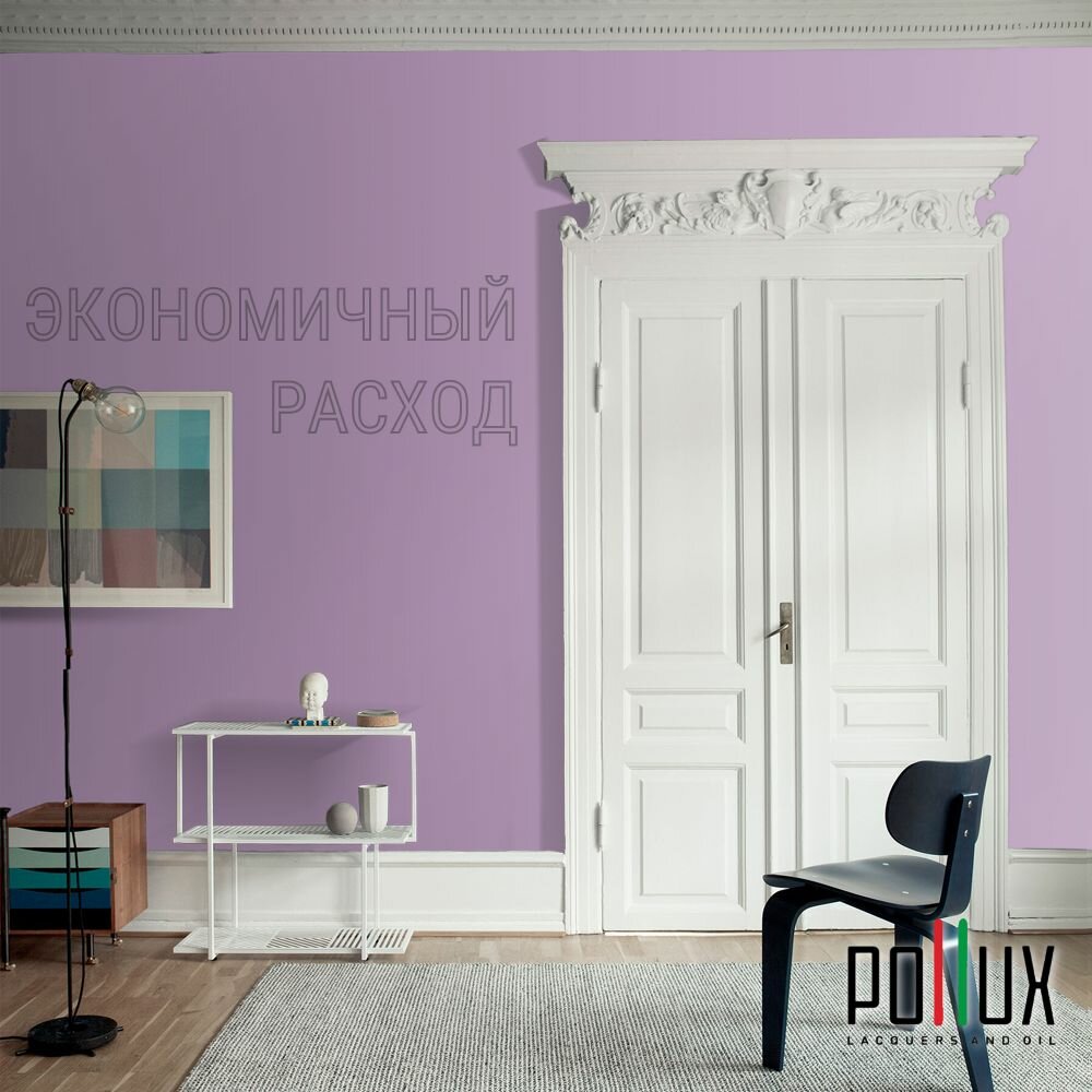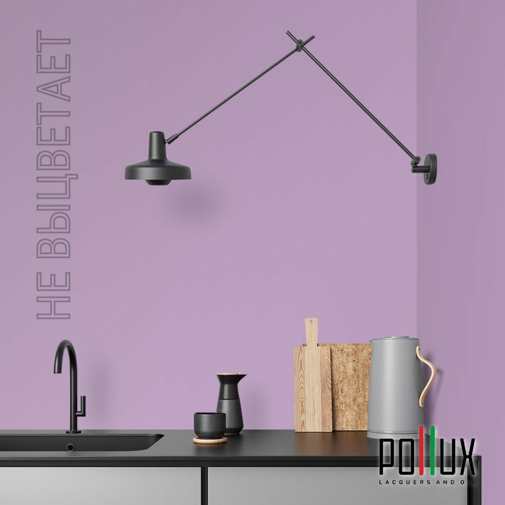Краска моющаяся интерьерная для стен и потолков, Pollux INTERIOR без запаха, быстросохнущая, акриловая, матовое покрытие, цвет NCS S 0907-R50B, 1л.