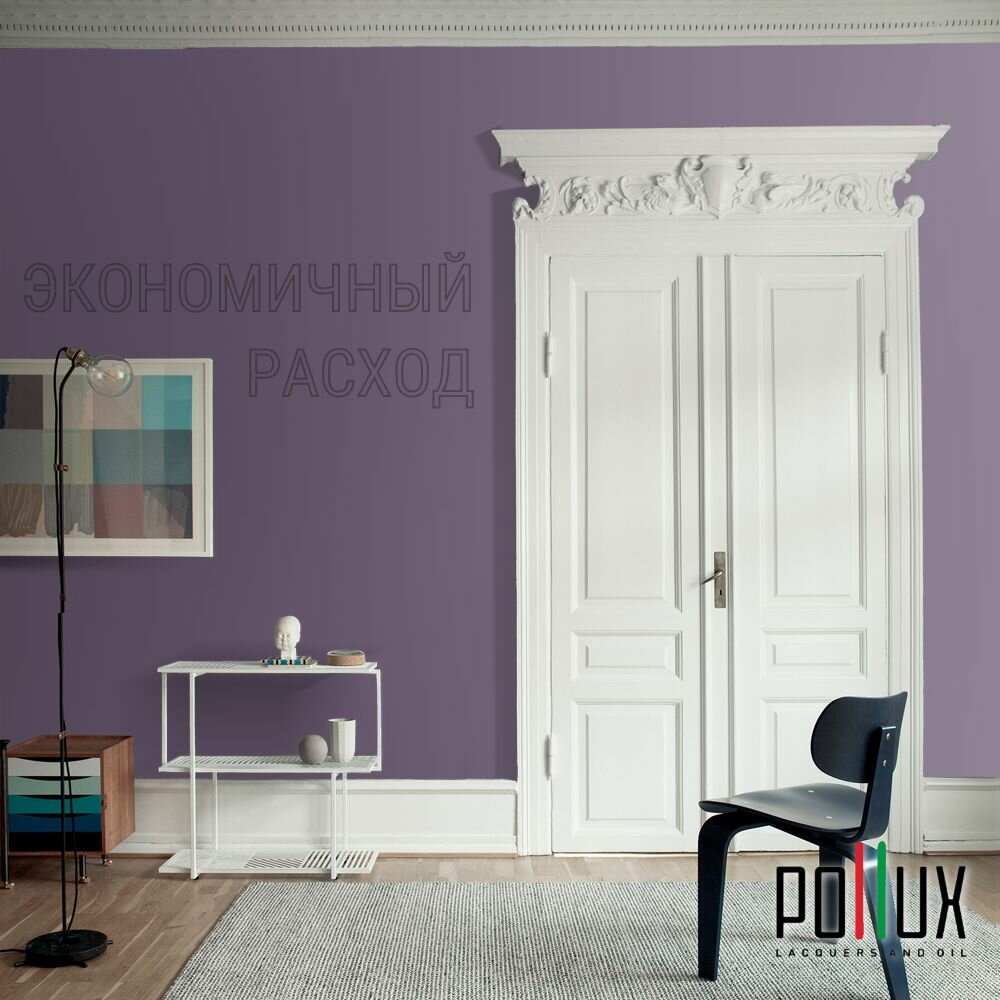 Краска моющаяся интерьерная для стен и потолков, Pollux INTERIOR без запаха, быстросохнущая, акриловая, матовое покрытие, цвет NCS S 3005-R50B, 1л.