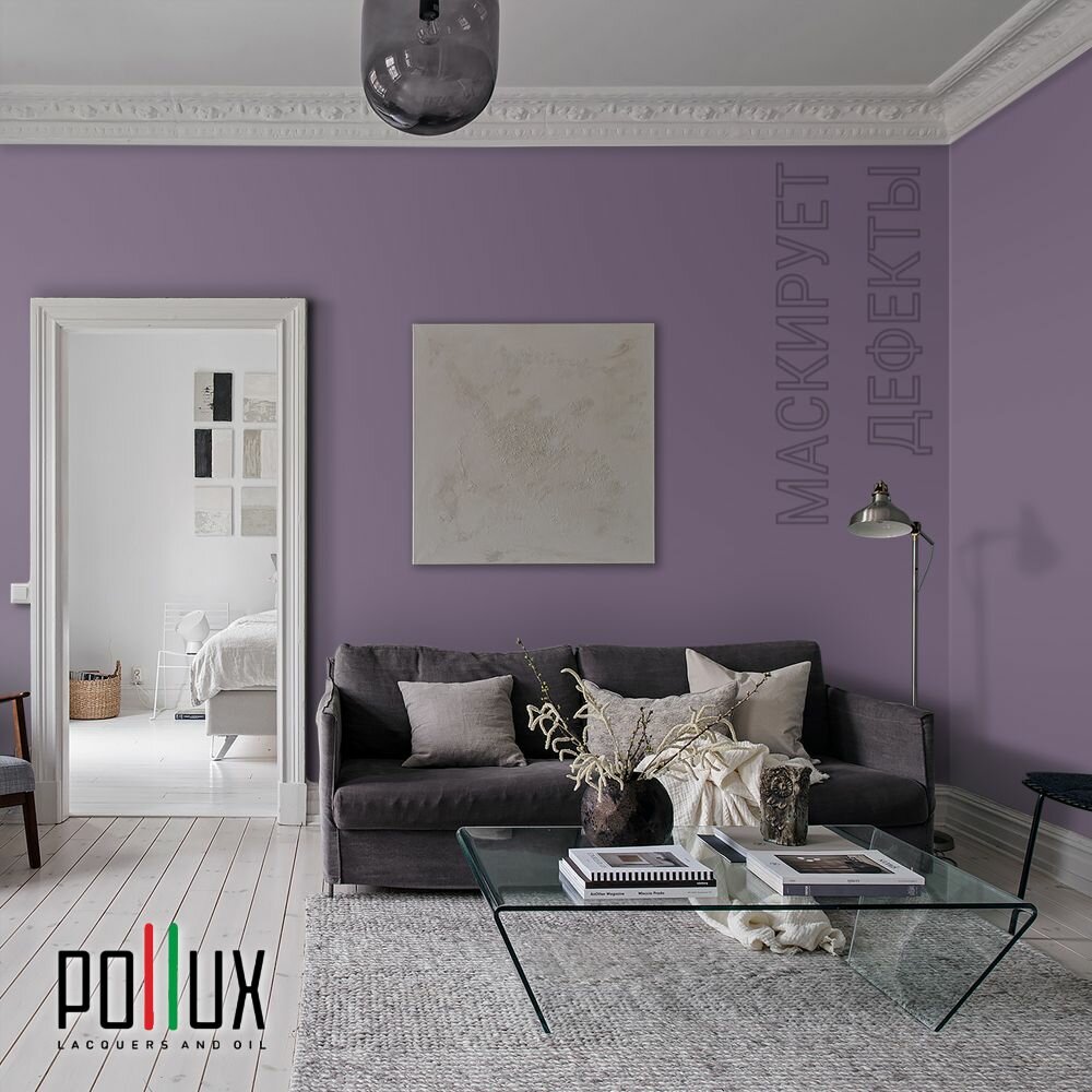 Краска моющаяся интерьерная для стен и потолков, Pollux INTERIOR без запаха, быстросохнущая, акриловая, матовое покрытие, цвет NCS S 7020-R50B, 1л.