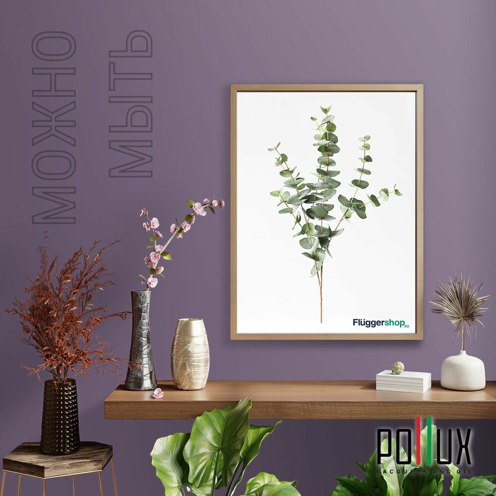 Краска моющаяся интерьерная для стен и потолков, Pollux INTERIOR без запаха, быстросохнущая, акриловая, матовое покрытие, цвет NCS S 5005-R50B, 5л.