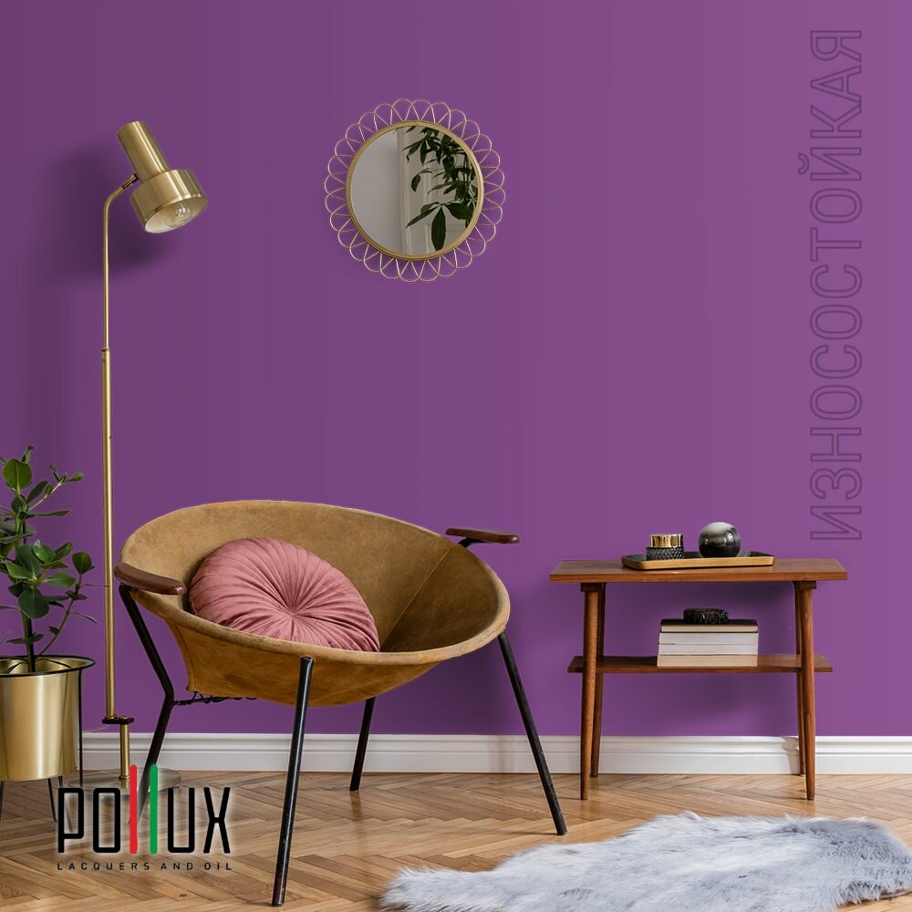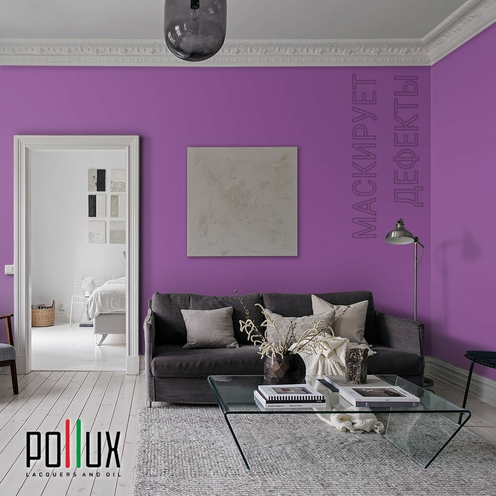 Краска моющаяся интерьерная для стен и потолков, Pollux INTERIOR без запаха, быстросохнущая, акриловая, матовое покрытие, цвет NCS S 3005-R50B, 1л.