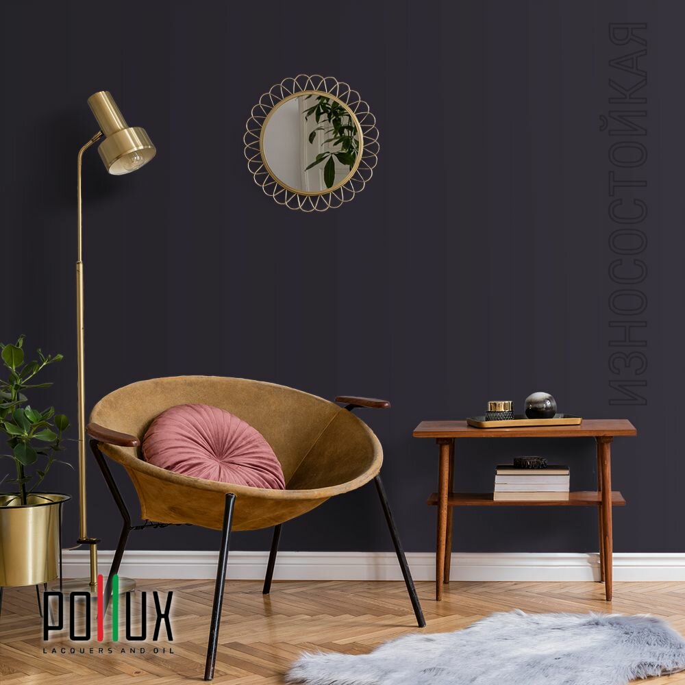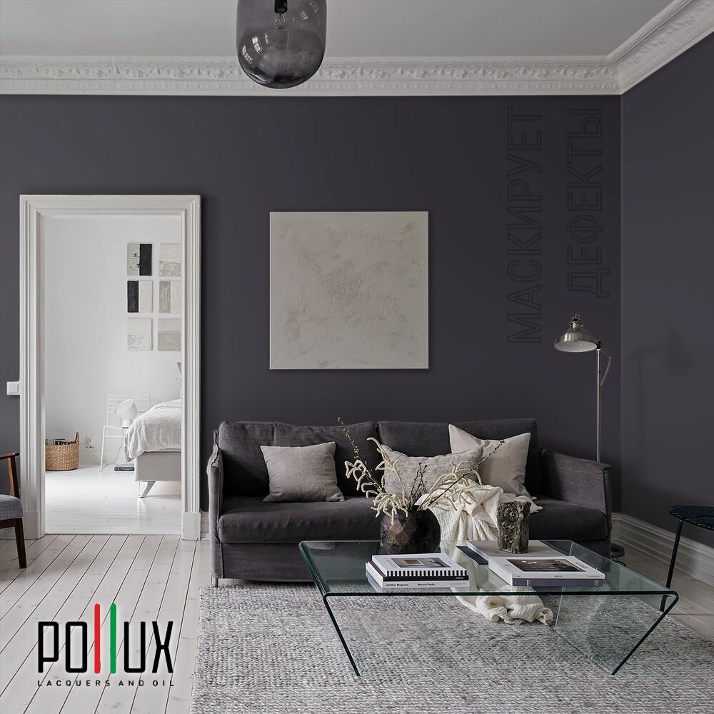 Краска моющаяся интерьерная для стен и потолков, Pollux INTERIOR без запаха, быстросохнущая, акриловая, матовое покрытие, цвет NCS S 7020-R50B, 1л.