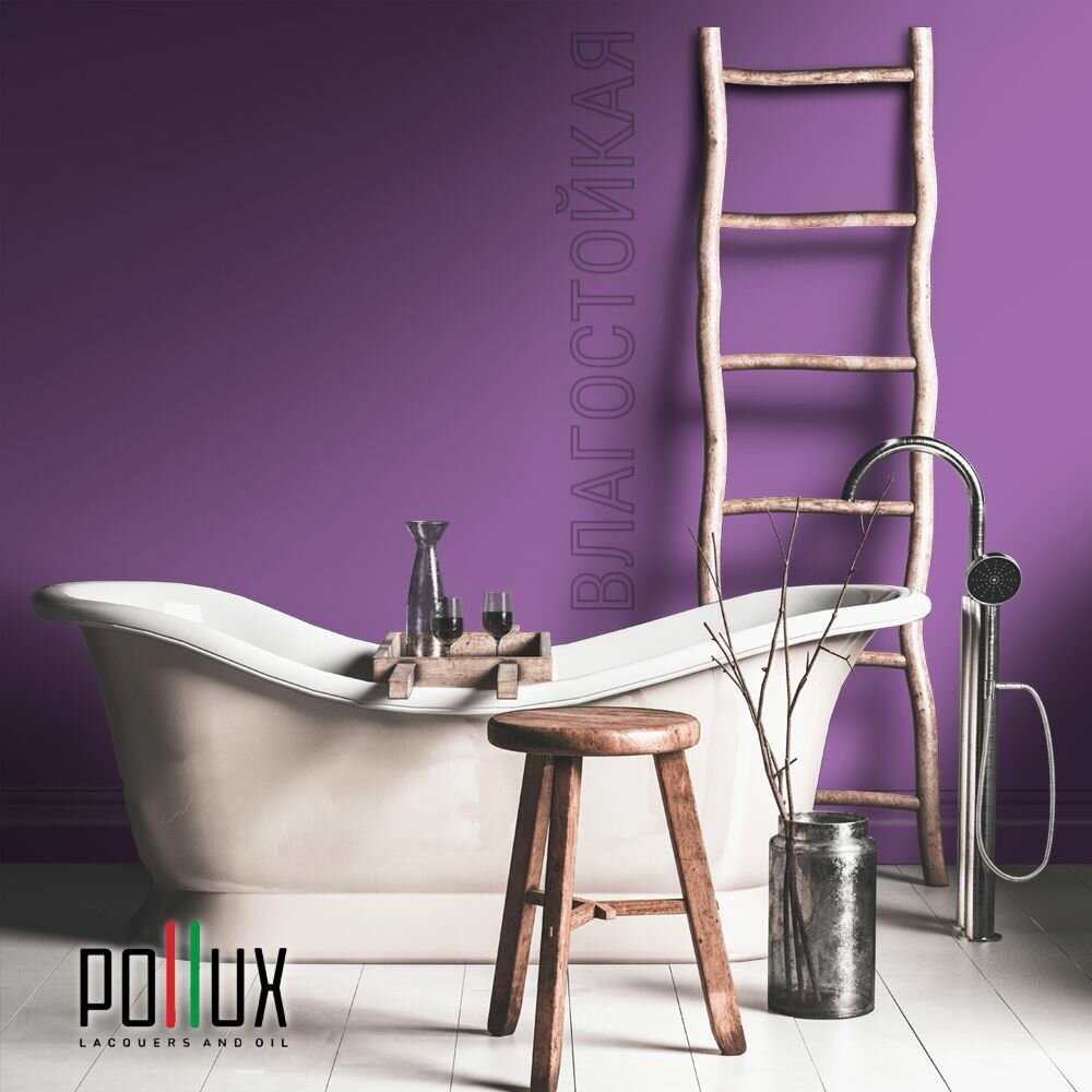 Краска моющаяся интерьерная для стен и потолков, Pollux INTERIOR без запаха, быстросохнущая, акриловая, матовое покрытие, цвет NCS S 3005-R50B, 1л.