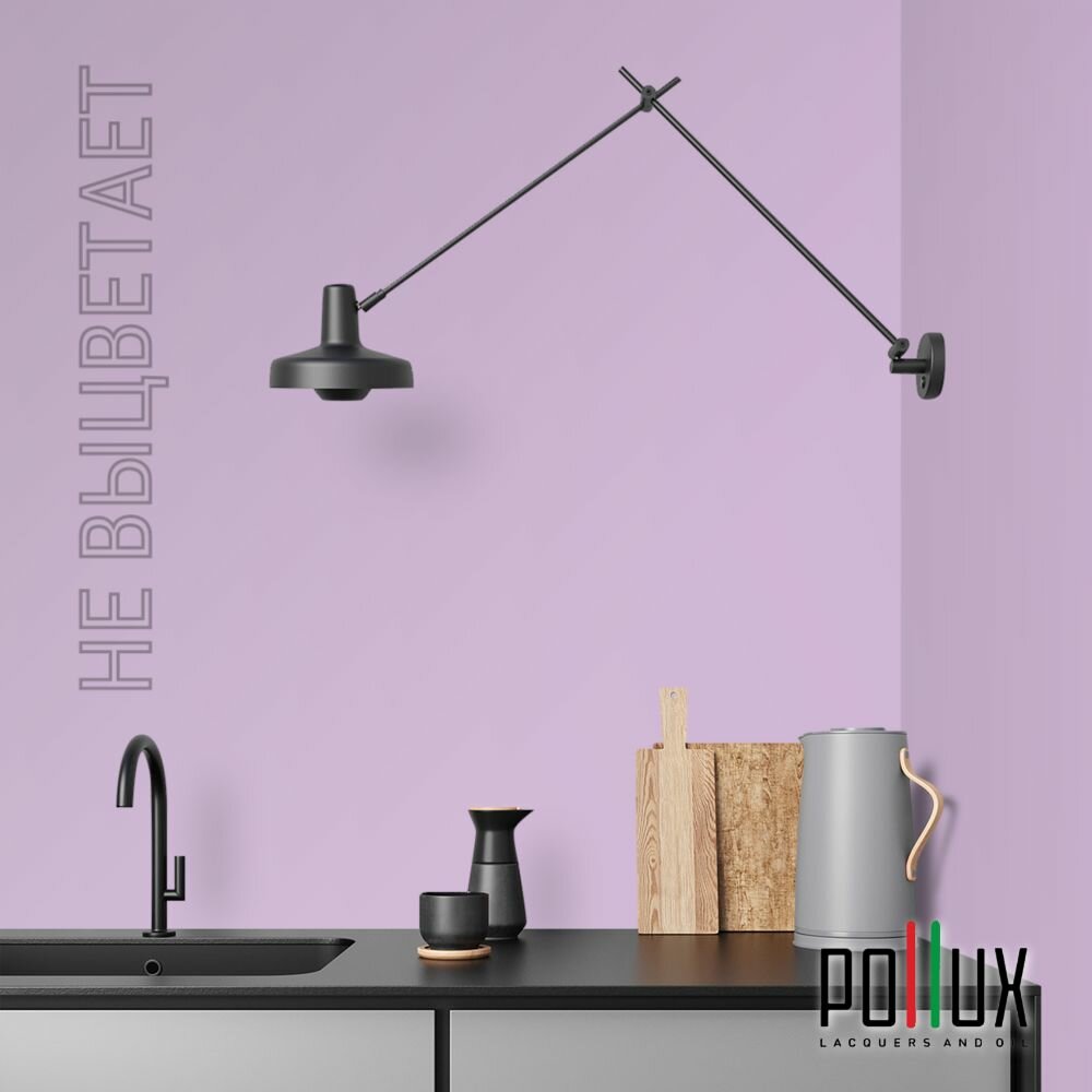 Краска моющаяся интерьерная для стен и потолков, Pollux INTERIOR без запаха, быстросохнущая, акриловая, матовое покрытие, цвет NCS S 7020-R50B, 1л.