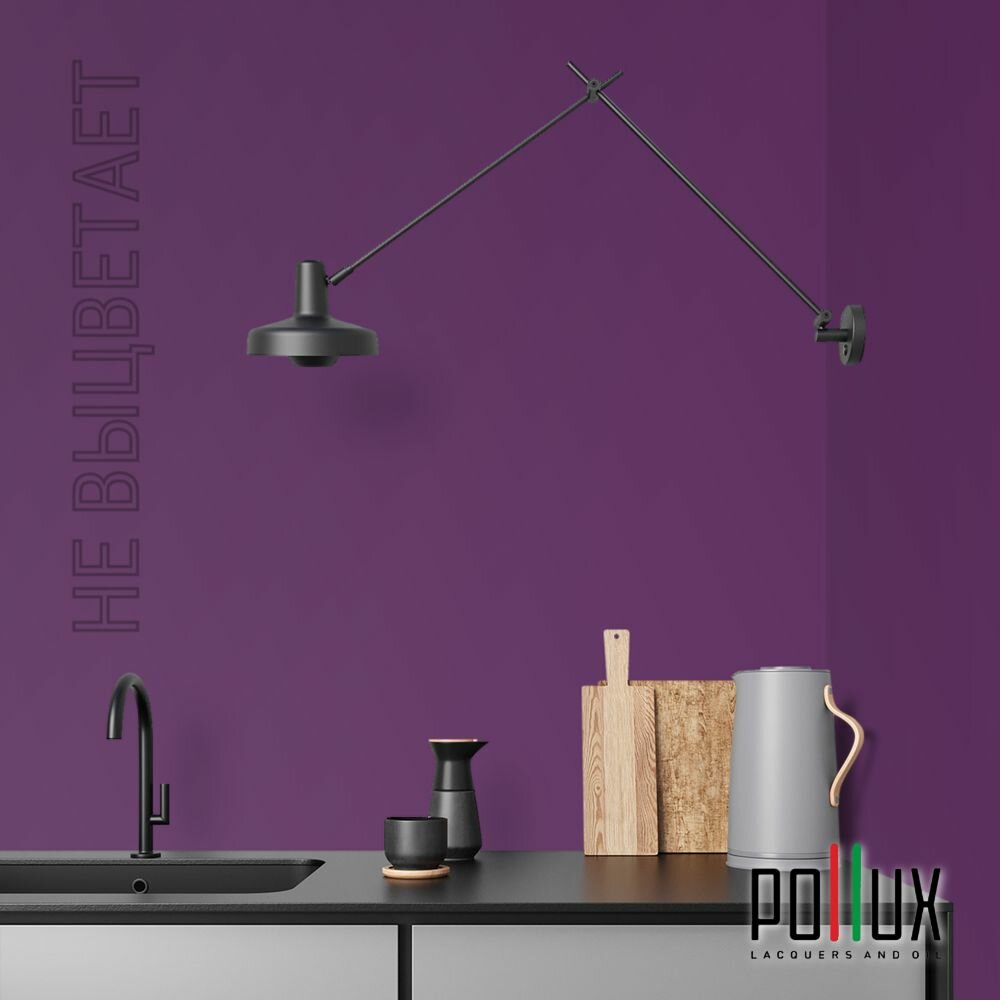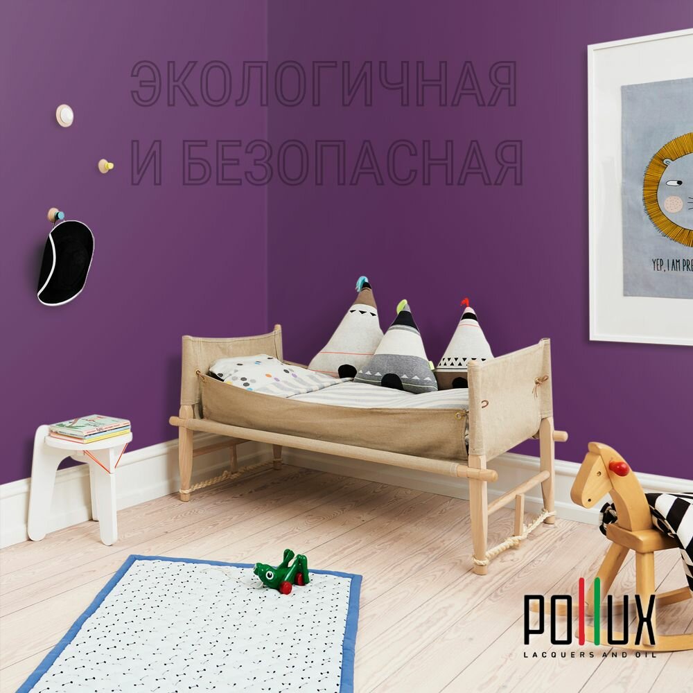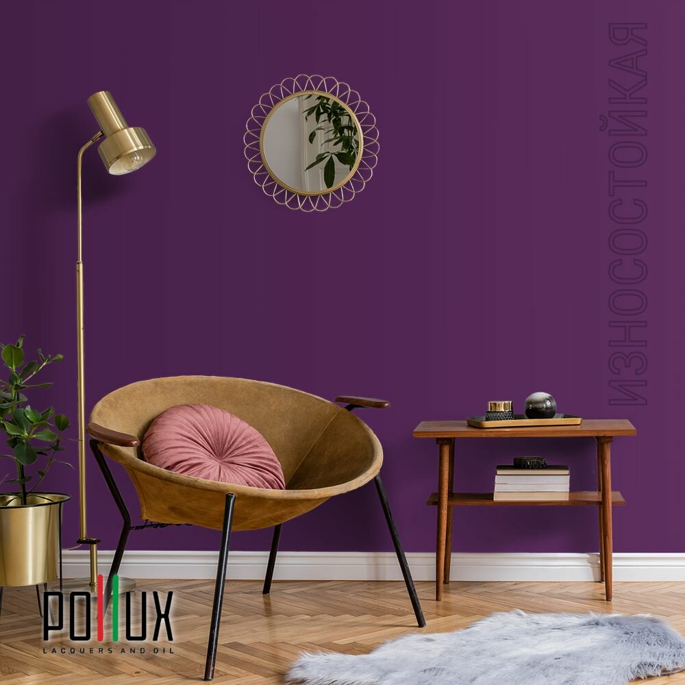 Краска моющаяся интерьерная для стен и потолков, Pollux INTERIOR без запаха, быстросохнущая, акриловая, матовое покрытие, цвет NCS S 3005-R50B, 1л.