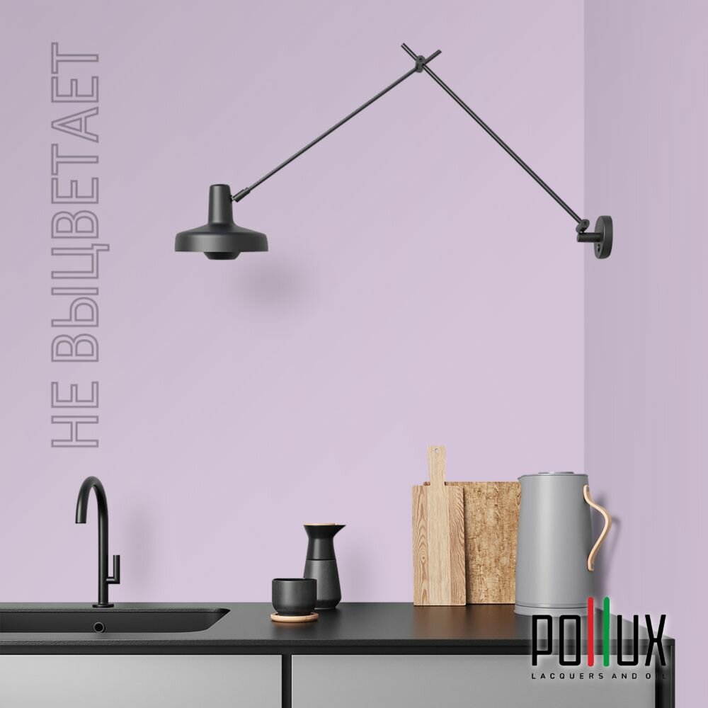 Краска моющаяся интерьерная для стен и потолков, Pollux INTERIOR без запаха, быстросохнущая, акриловая, матовое покрытие, цвет NCS S 0907-R50B, 1л.