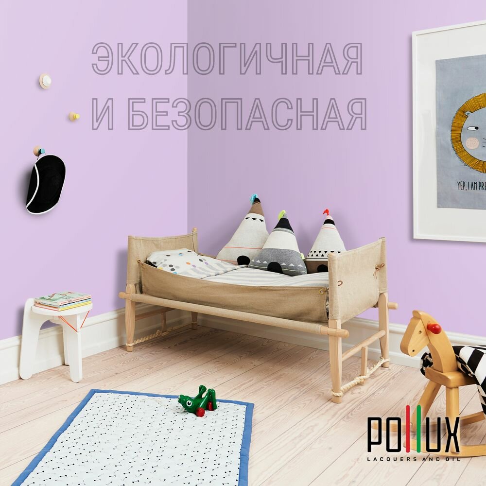 Краска моющаяся интерьерная для стен и потолков, Pollux INTERIOR без запаха, быстросохнущая, акриловая, матовое покрытие, цвет NCS S 2030-R50B, 1л.