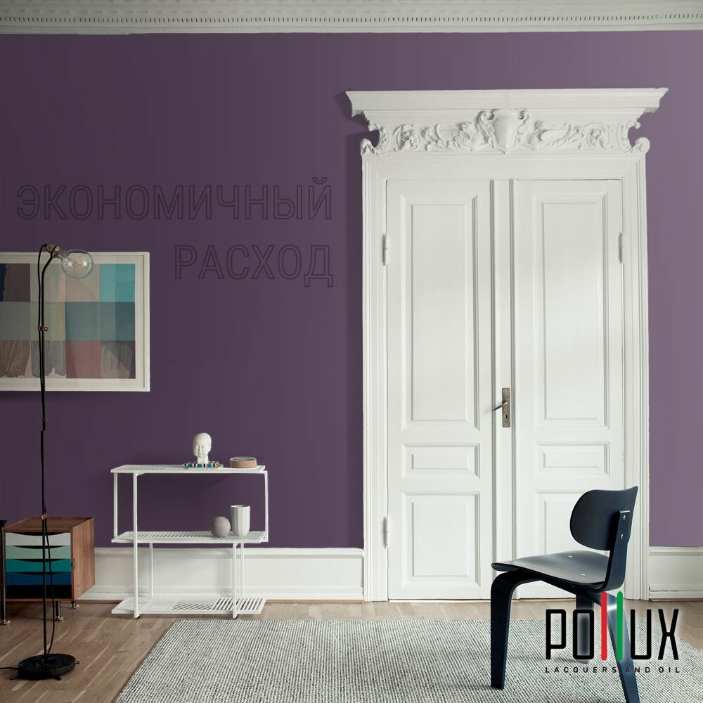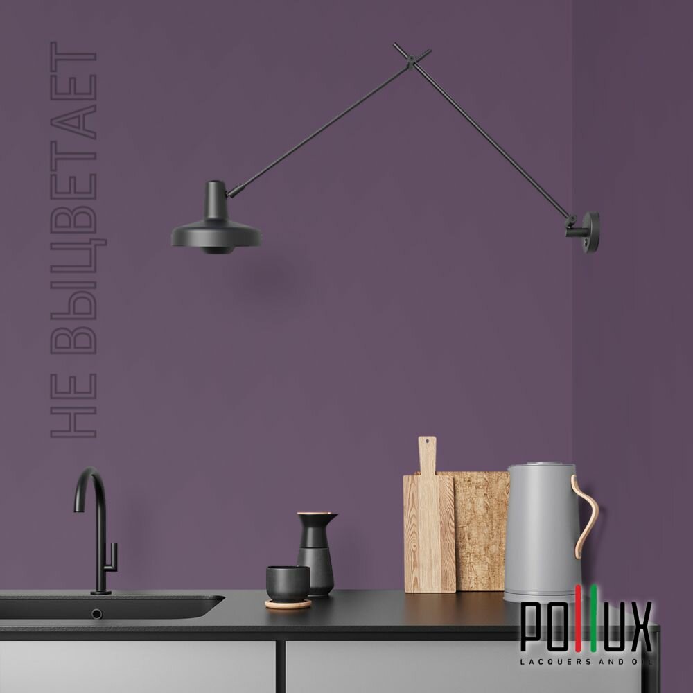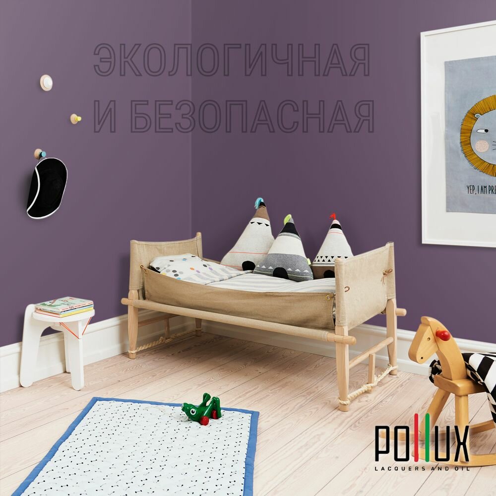 Краска моющаяся интерьерная для стен и потолков, Pollux INTERIOR без запаха, быстросохнущая, акриловая, матовое покрытие, цвет NCS S 3005-R50B, 1л.