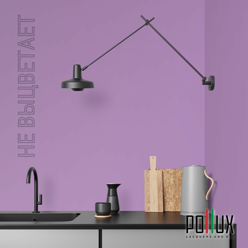 Краска моющаяся интерьерная для стен и потолков, Pollux INTERIOR без запаха, быстросохнущая, акриловая, матовое покрытие, цвет NCS S 3005-R50B, 1л.