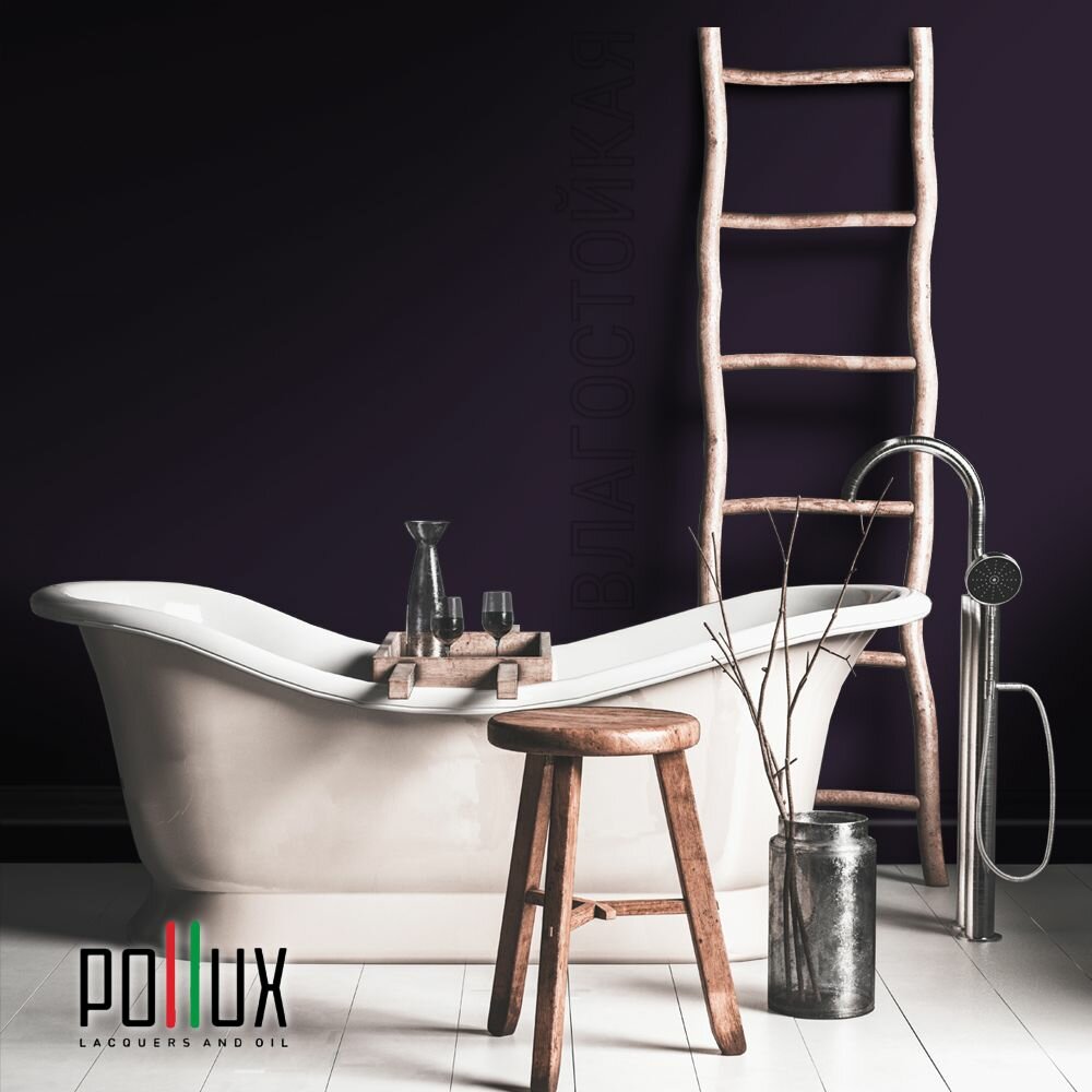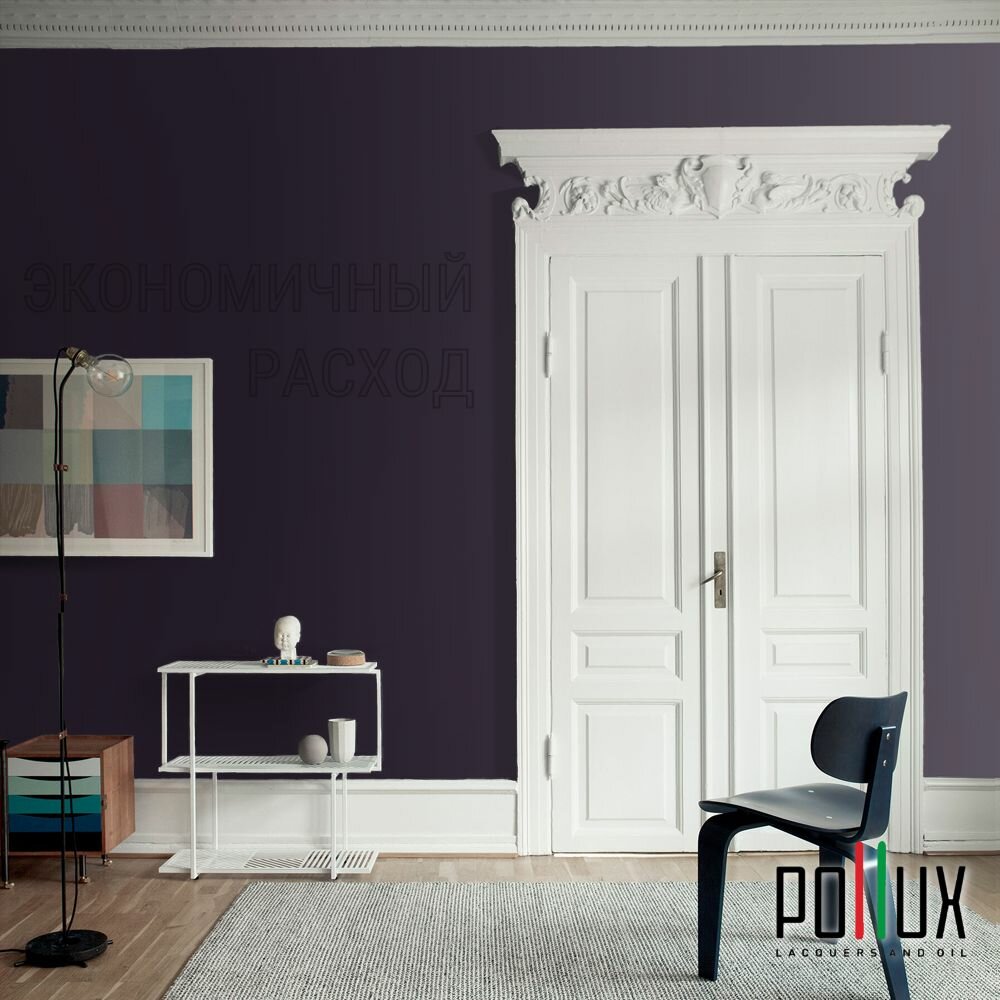 Краска моющаяся интерьерная для стен и потолков, Pollux INTERIOR без запаха, быстросохнущая, акриловая, матовое покрытие, цвет NCS S 7020-R50B, 1л.
