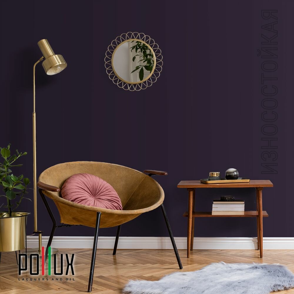 Краска моющаяся интерьерная для стен и потолков, Pollux INTERIOR без запаха, быстросохнущая, акриловая, матовое покрытие, цвет NCS S 3005-R50B, 1л.