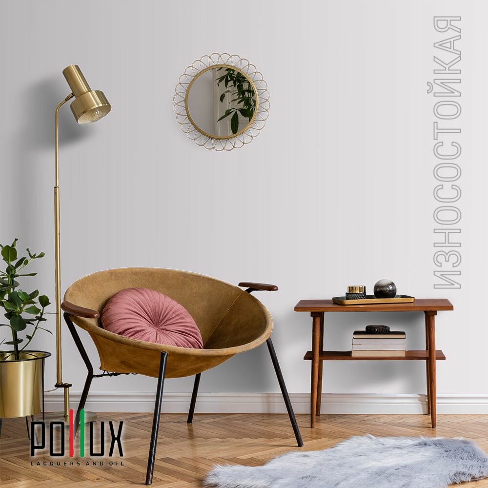 Краска моющаяся интерьерная для стен и потолков, Pollux INTERIOR без запаха, быстросохнущая, акриловая, матовое покрытие, цвет NCS S 3030-R50B, 1л.