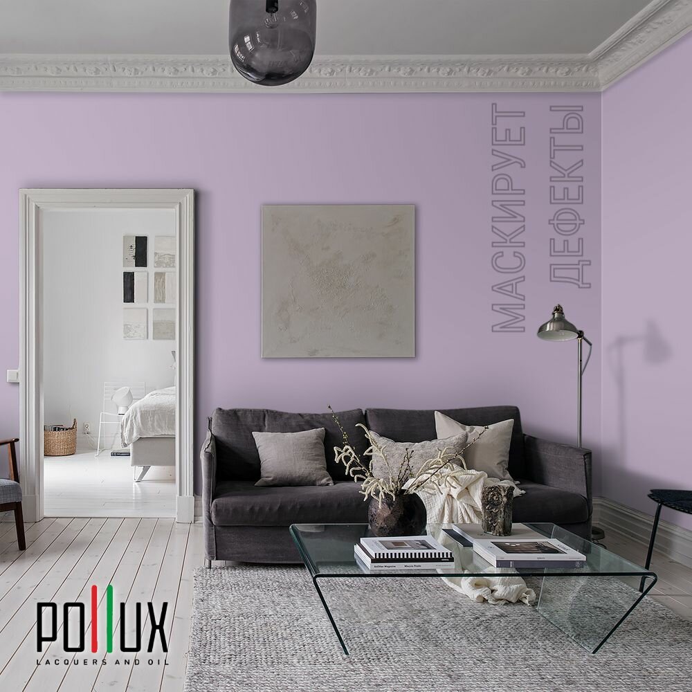 Краска моющаяся интерьерная для стен и потолков, Pollux INTERIOR без запаха, быстросохнущая, акриловая, матовое покрытие, цвет NCS S 0907-R50B, 1л.