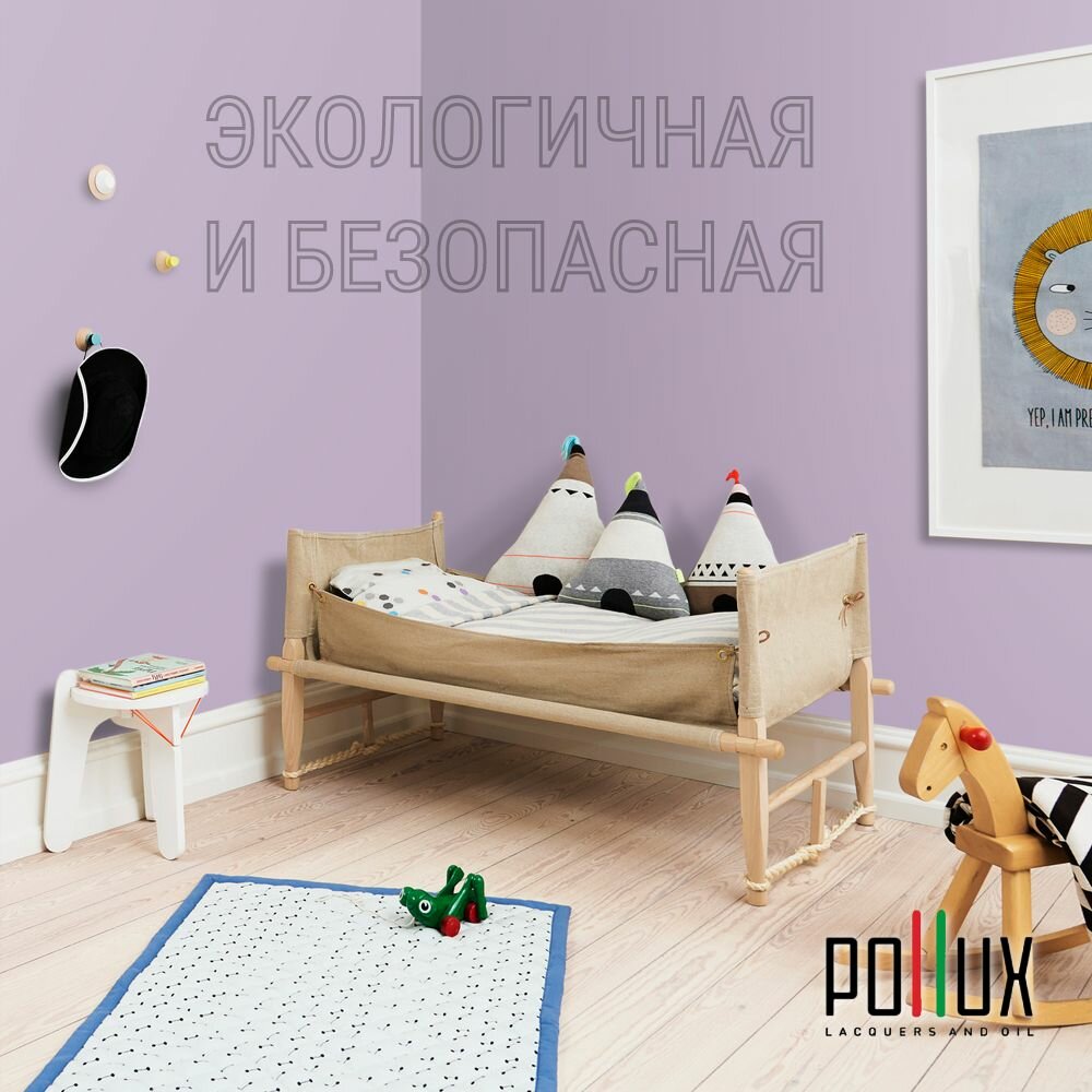 Краска моющаяся интерьерная для стен и потолков, Pollux INTERIOR без запаха, быстросохнущая, акриловая, матовое покрытие, цвет NCS S 0510-R50B, 1л.