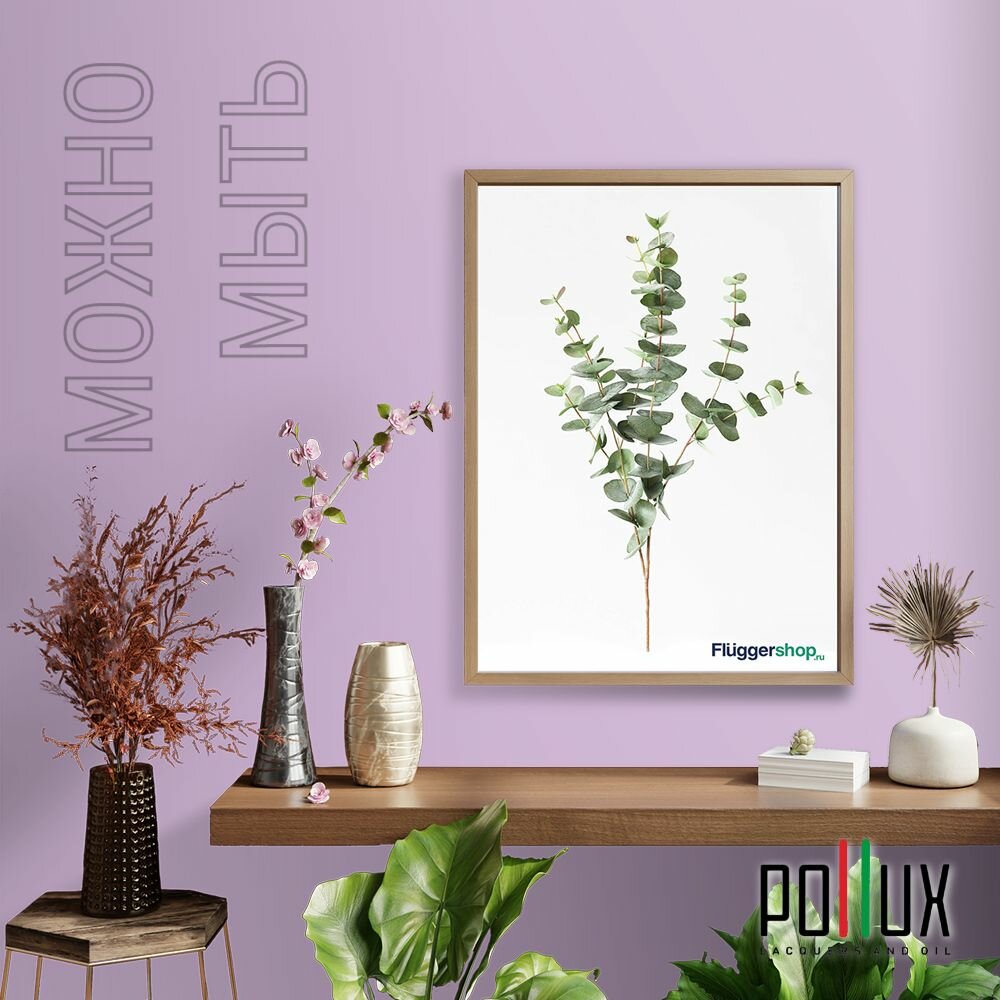 Краска моющаяся интерьерная для стен и потолков, Pollux INTERIOR без запаха, быстросохнущая, акриловая, матовое покрытие, цвет NCS S 5005-R50B, 5л.
