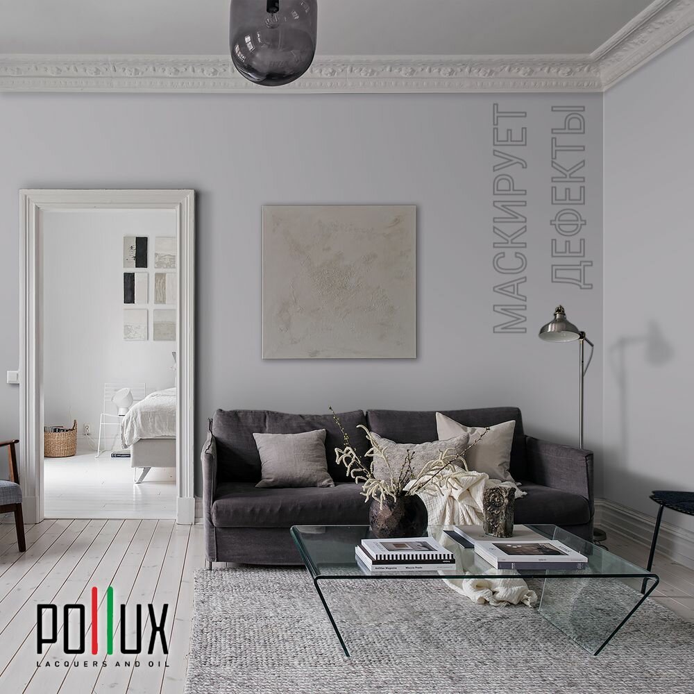 Краска моющаяся интерьерная для стен и потолков, Pollux INTERIOR без запаха, быстросохнущая, акриловая, матовое покрытие, цвет NCS S 7010-R50B, 1л.