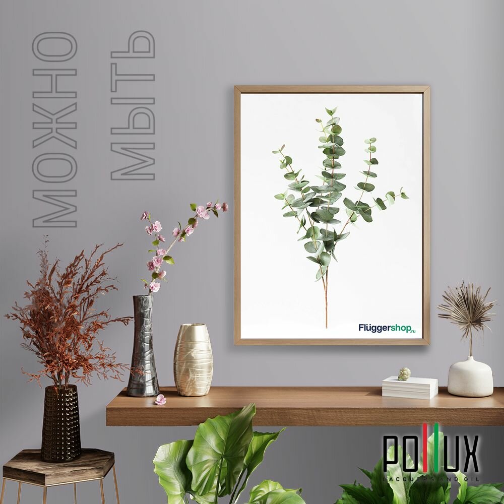 Краска моющаяся интерьерная для стен и потолков, Pollux INTERIOR без запаха, быстросохнущая, акриловая, матовое покрытие, цвет NCS S 7005-R50B, 1л.