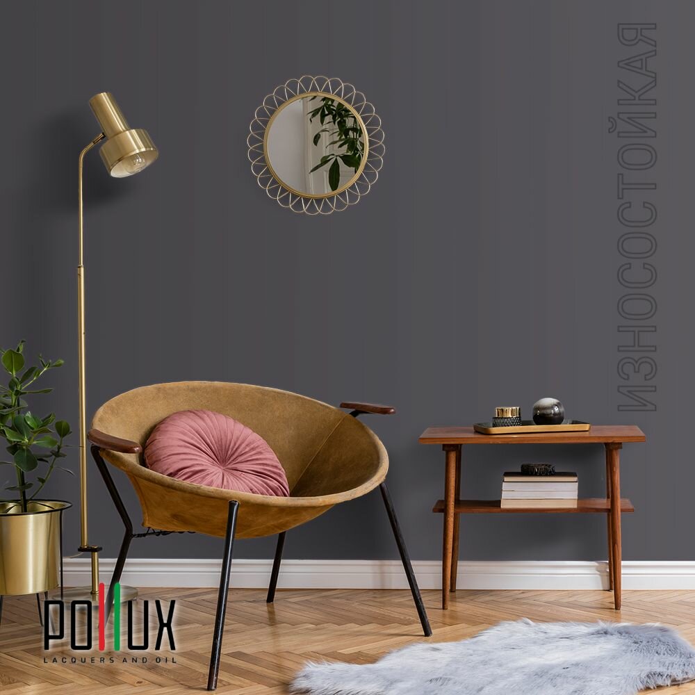 Краска моющаяся интерьерная для стен и потолков, Pollux INTERIOR без запаха, быстросохнущая, акриловая, матовое покрытие, цвет NCS S 7020-R50B, 1л.