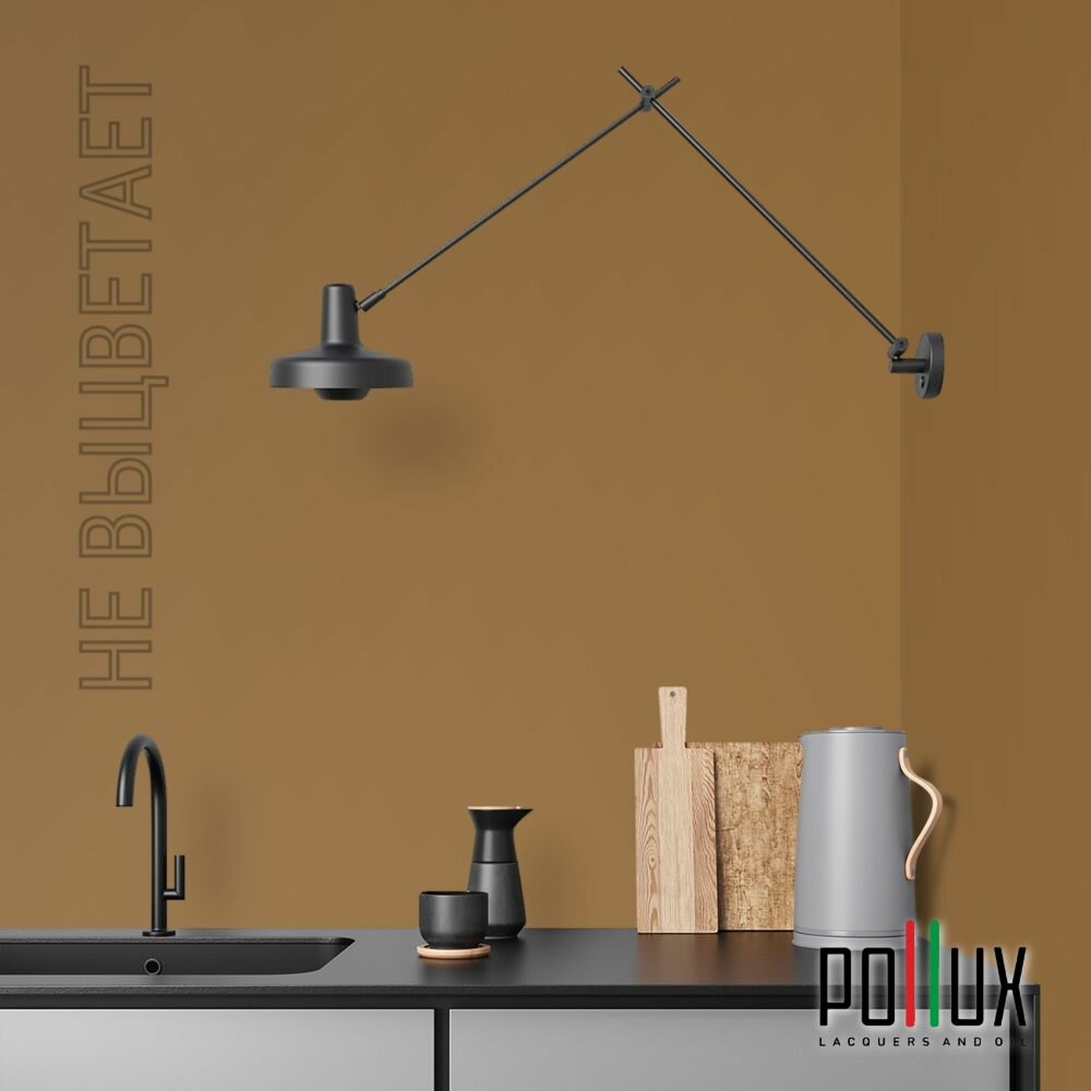 Краска моющаяся интерьерная для стен и потолков, Pollux INTERIOR без запаха, быстросохнущая, акриловая, матовое покрытие, цвет NCS S 1080-Y20R, 1л.